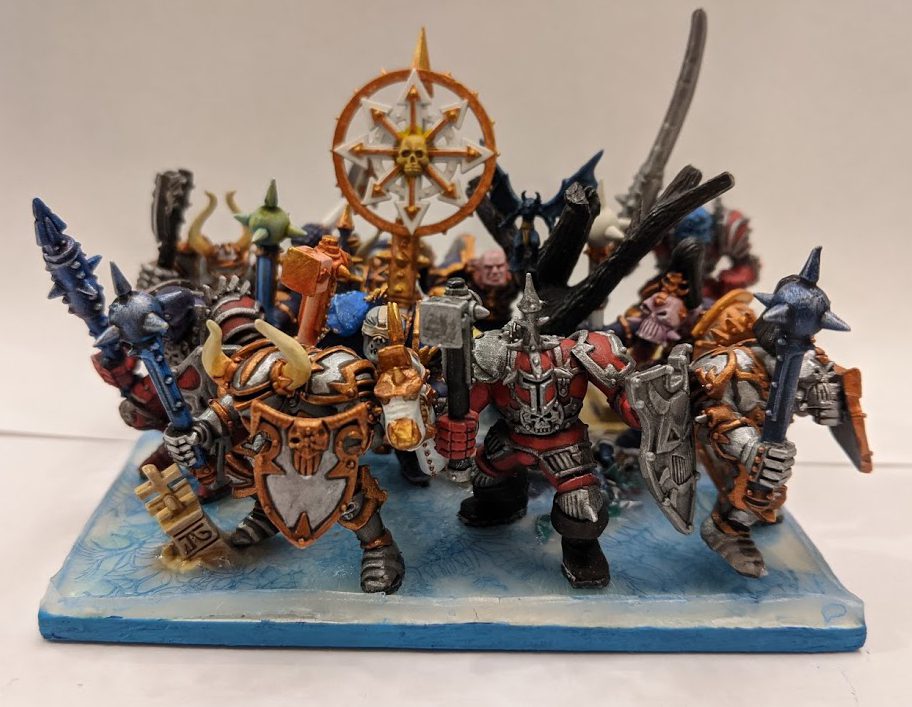 First, I had to decide on what would be best team for him. Now, my brother, Sam, is a normie, but he used to play Warhammer Fantasy Battles with me on the living room floor way back in the day. And while I was all over the place with my favorite armies, he always loved Chaos Warriors. With the best armor in the game and a truly impressive array of weaponry, they were rarely bested in combat. And along with Chaos Warriors came beastmen, minotaurs, and all sorts of other monsters. I figured that having a team filled with recognizable characters from the Old World would spark his nostalgia and give him an immediate emotional connection to the team.