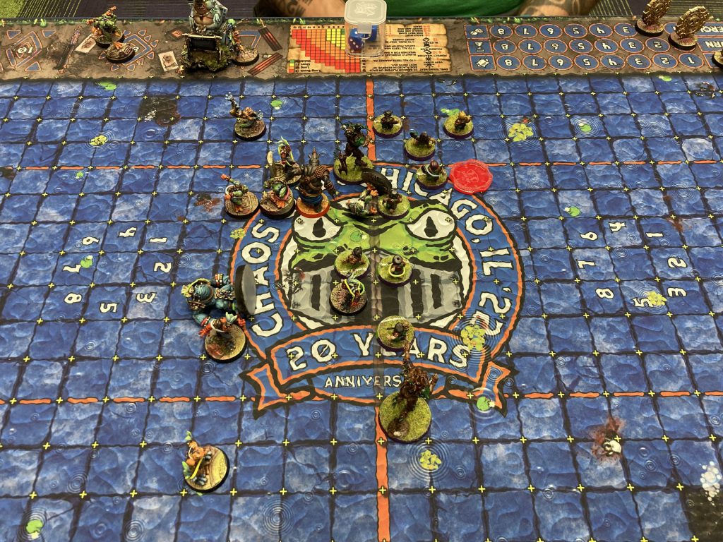 This is an older picture, but seriously: look at these stupid gorgeous Slann models. The blending on that head coach’s belly!*For some reason, the Blood Bowl community in the Southeast loves their Chaos gods. The only Chaos god whose tournament I haven’t attended in the last two years is Nurgle, and that’s only because I was busy that weekend.
