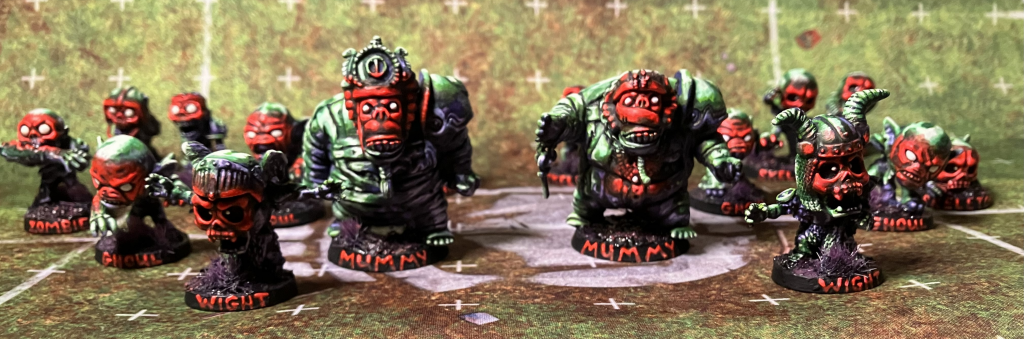 Necromantic Horror team by Mike RathboneBig changes for Necro, with Ghouls finally joining the regen club, cost reduction for Wraiths, Golems, and Wolves, and the new Eye Gouge skill for the Zombies. The latter is really hard to guess the impact of, but my gut feels is it’s pretty powerful as a freebie on a meatbag. But overall it’s really nothing but buffs for Necro, who were already one of the strongest teams in the game.