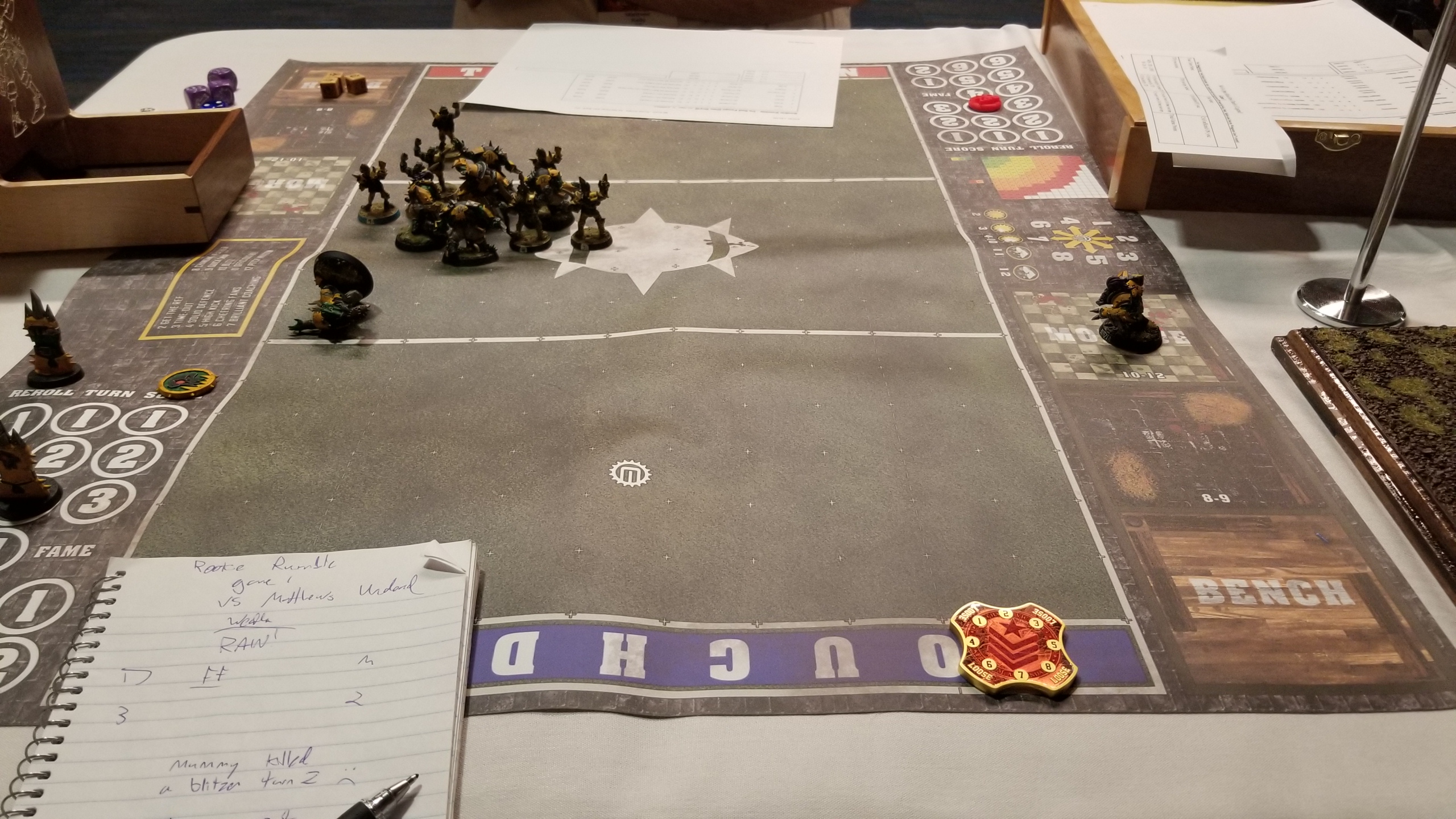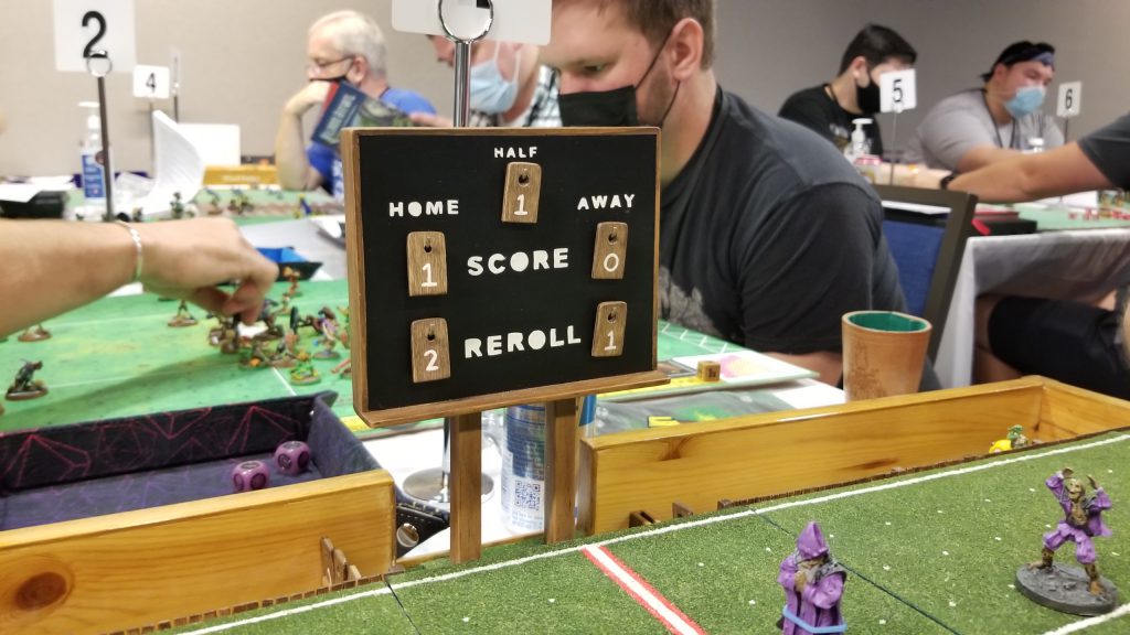 Second, the kick-off tables for both events were pretty wonky. They had “classic” Blood Bowl language throughout, and didn’t even interact with Assistant Coaches or Cheerleaders. I hope no one brought any for that reason. Hopefully the TOs will look to update these for next year.