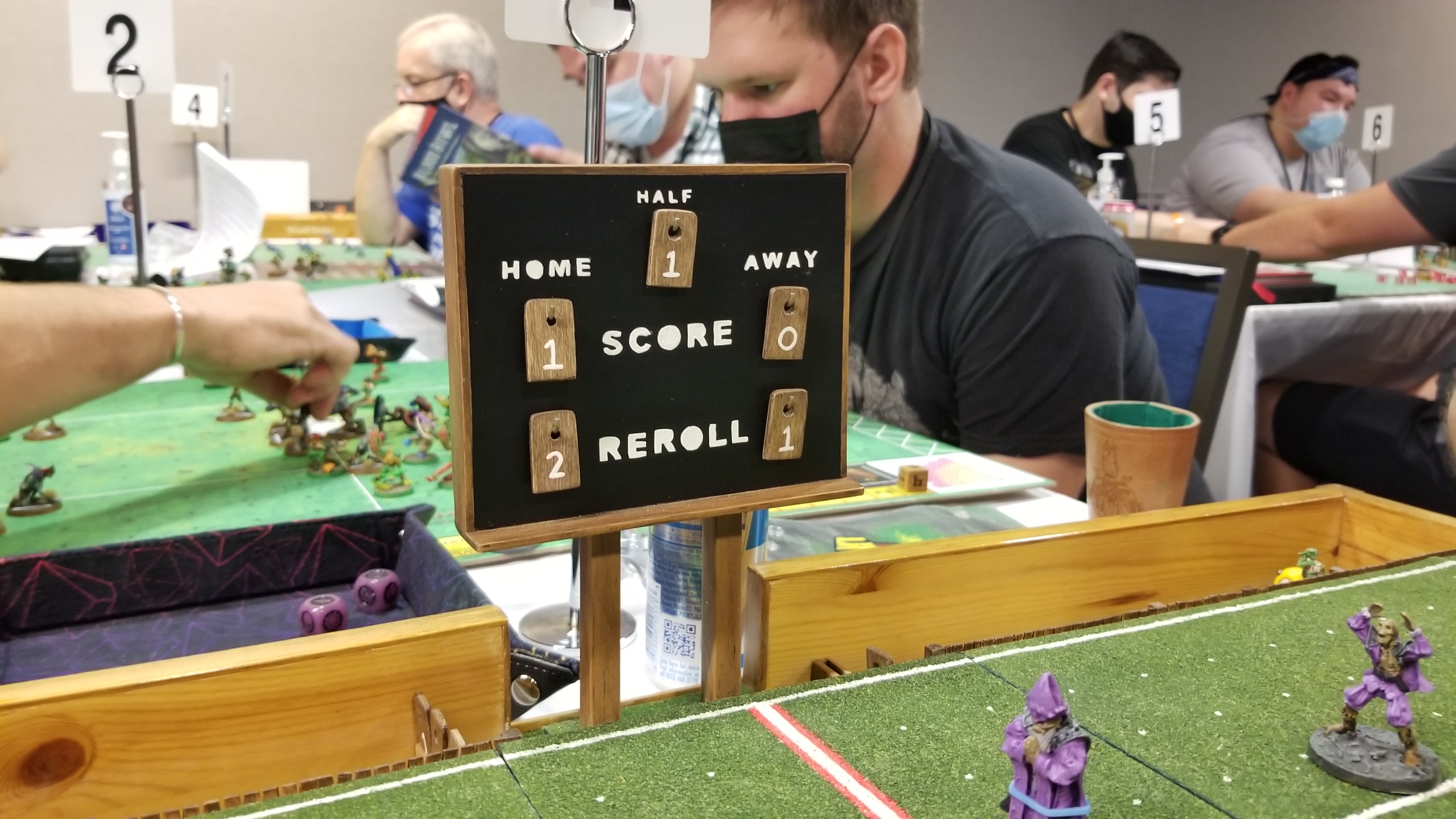 The NOVA Open is an event that spans from Wednesday to Sunday, and the Rookie Rumble is held on Friday, making it the first Blood Bowl event of the convention. The scheduling for this event is excellent. It started at 11 which was dope because the night before I was up late playing 40k and drinking IPAs and this meant I didn’t have to get up too early! Perfect! It was also only 3 rounds, so even with an hour for lunch, the event would end around 3 PM. 3 games of 7s is such a fun and easy time. Kudos to the TOs for keeping it light on Blood Bowl’s day one.I get down to the Blood Bowl area, check in, and catch up with friends while we await pairings. There were a ton of friendly faces at the Rookie Rumble, including multiple Goonhammer patrons and contributors. Most notably, Garrett “John Condit” Serverson took a break from Adeptus Titanicus to put his brand new Khorne team through their paces. He’ll give you the scoop in his write-up, but I hear he did all right!