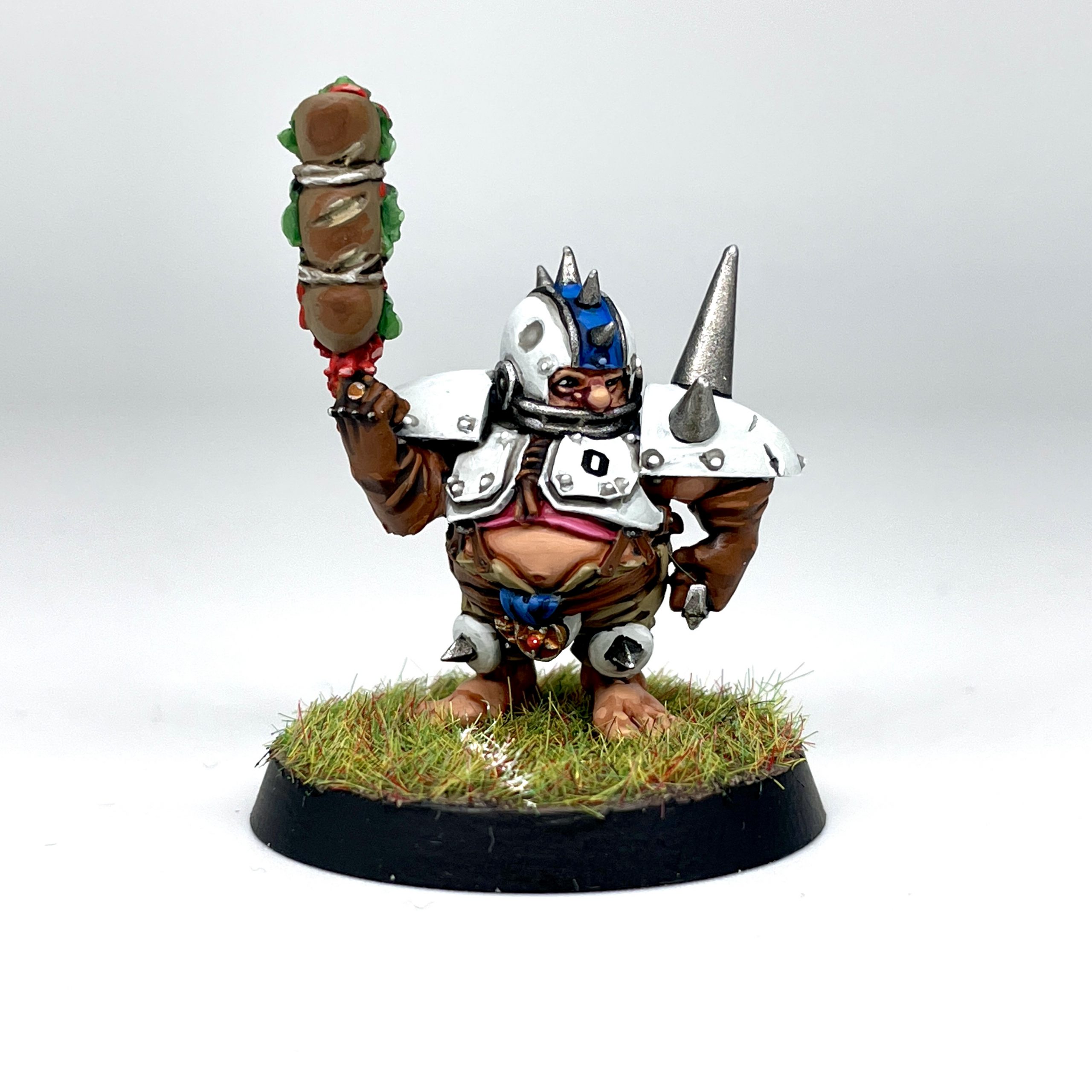 Puggy Baconbreath. Credit: SRMThe only real challenge here was painting the foodstuff carried by the two players. Getting into the folds of the sandwich isn't that hard, but figuring out how to paint all that crust fairly convincingly involved looking at a lot of reference pictures of subs and pies, and that made me very hungry. I think that means I can have pie for lunch and write it off as a business expense, but I am not a Business Genius so that might not be how it works.