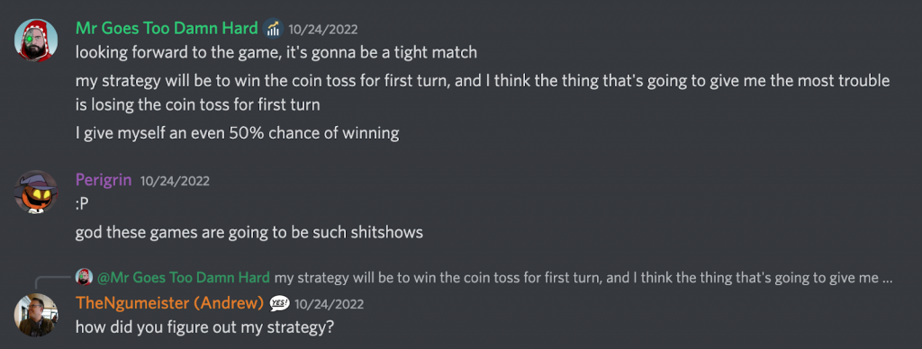 This uh, didn’t happen. Turns out I can use biovores to create a mine field just in front of the dreadnought bowling ball to slow them down, lest they take some mortal wounds, making it impossible for Condit to reach me the entire game. Then I used my Hive Tyrant with the reaper to fly over, kill something, then fly back. Meanwhile my Tyranid warriors go cover to cover, avoiding the dreads, and hit some small squads of marines hanging on objectives to tear down some banners and stifle primary. In total I moved and used 5 units from my army while the rest hung back and kinda just took it easy. There was one part where my hive tyrant failed to kill all the marines in a squad and I couldn’t Overrun, which left him out of position. At this point I remember Condit saying “AHA GOT YOU FUCKER”, but turns out I can use Encircle The Prey to just leave at the end of the turn.