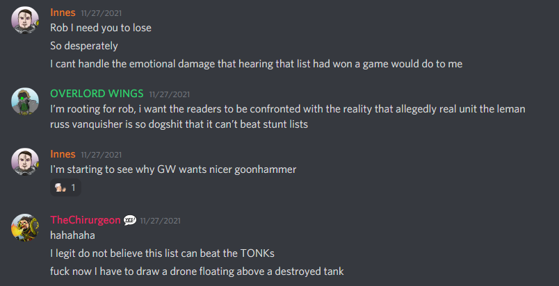 That's it. Join us next time - on Monday - when we look at the results of the final round of BLUNDERDOME games and crown our dumb, shitty winner. We'll also do a mini-roundtable of final thoughts on the games and the lists, talk about what we've learned, and our favorite moments from the event. In the meantime, if you have any questions or feedback, drop us a note in the comments below or email us at contact@goonhammer.com.