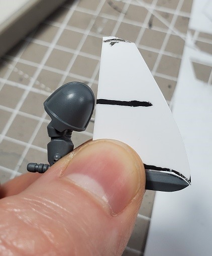 Step 3. Carefully cut out the trailing edge of the plasticard, and the wider shape of the plasticard. DON’T cut it to size yet. It’s almost impossible to make the cut flush with the model on the first pass. You are going to want to continuously whittle the edge until it is perfectly flush with the model. Leaving space allows you to keep on whittling until you get it where you need it and is easier to handle.