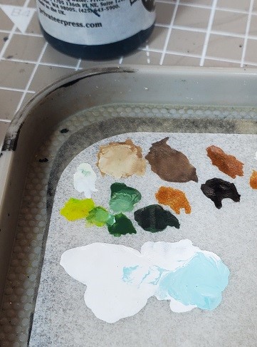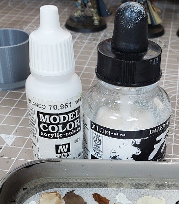 Step 8. Painting. We’re starting with the white to keep these colors popping. Even if you primed white you are gonna want to mix this and put a layer on to keep the colors consistent as you mix the coming layers. I use a ~75/25 paint/ink when I paint white as it will cover a lot better.