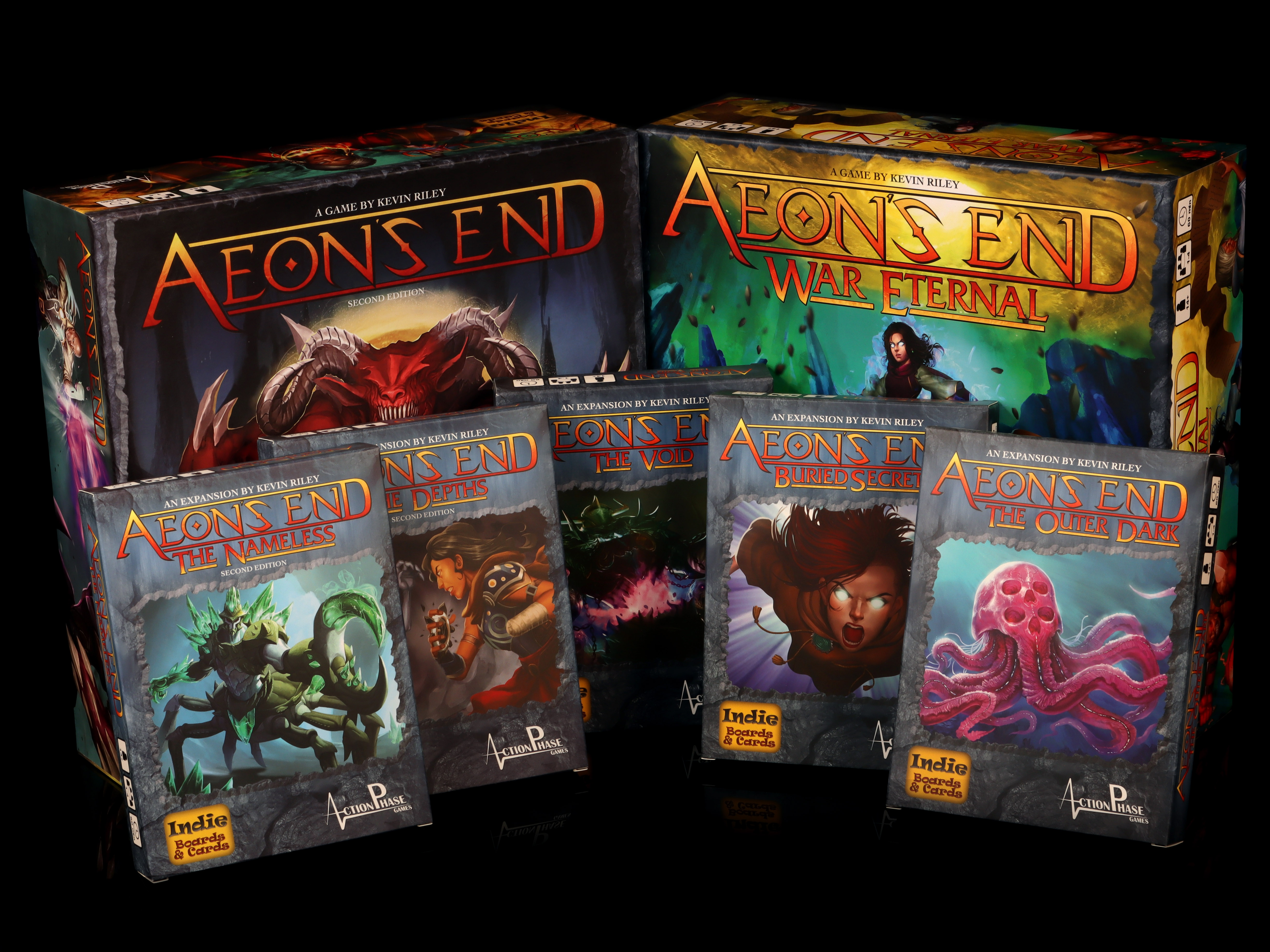 The first two "waves" of Aeon's End and expansionsThe base game of Aeon's End comes with a lot of content: 6 breach mages, 4 nemeses, and dozens of different types of cards to put into the market. However, you can add to this by way of the many expansions. These expansions come in two forms. Small expansions that add just a few cards, maybe a single Nemesis, or a couple breach mages; and then there are large expansions that are standalone games in their own right. You can keep these standalone games separate, or you can mix them together to create a single massive library of Aeon's End goodness.