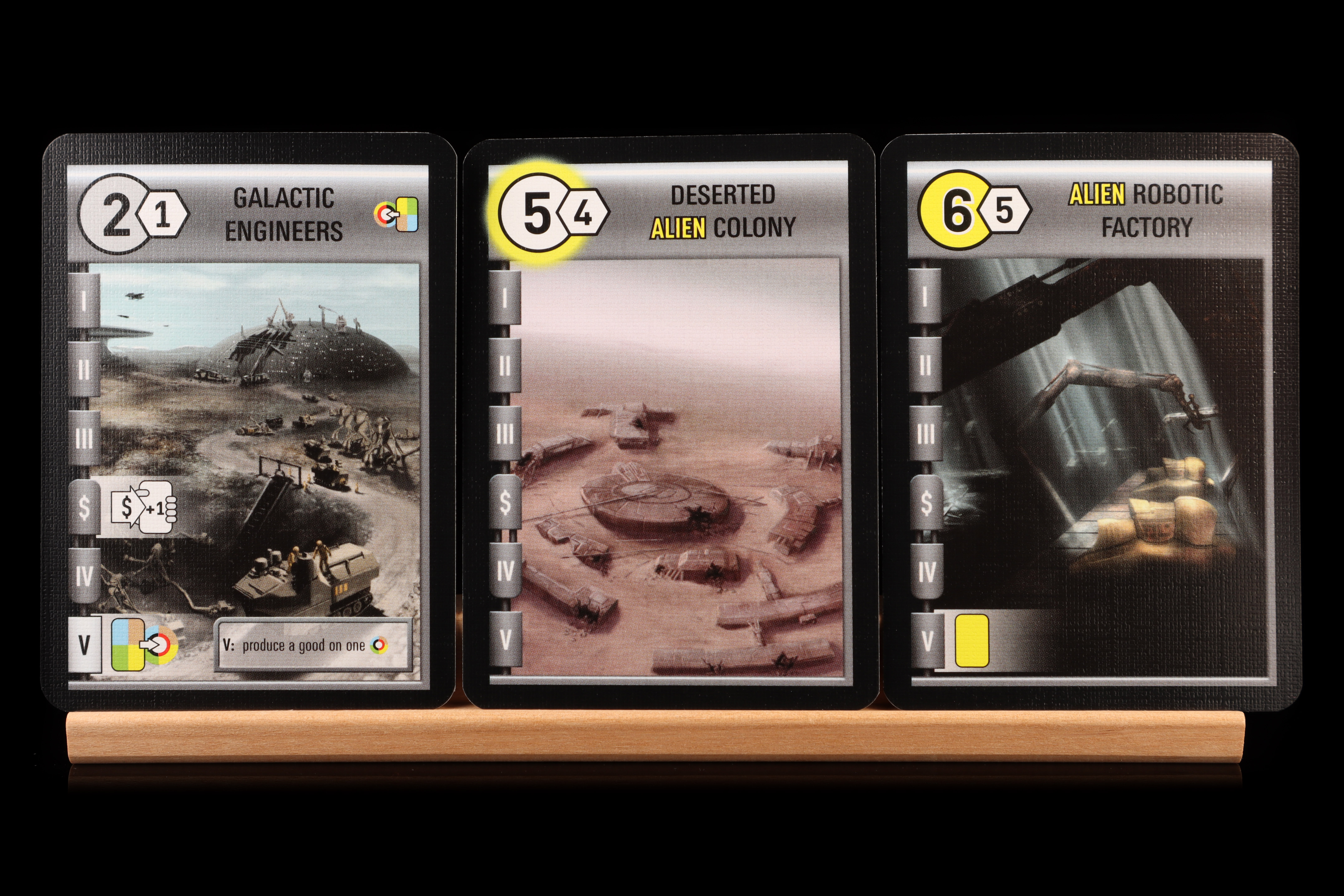 - Bonus Option 1: First, sell a single trade good for cards instead of victory points. The amount of cards you get ranges from 2 cards (for Novelty, blue goods) up to 5 cards (for Alien Technology, yellow goods).