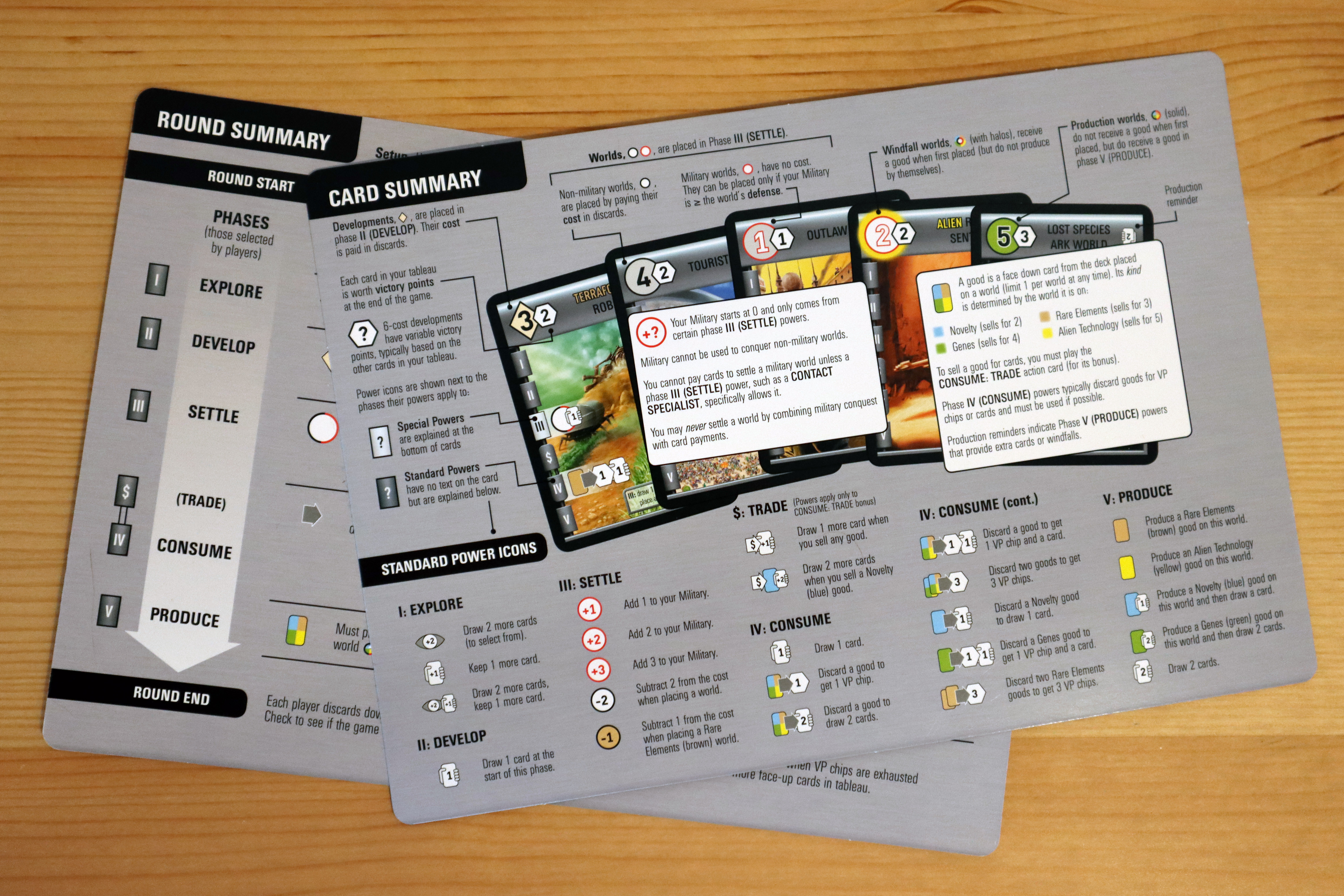 Basically every rule for the game on a two-sided piece of paper, and the game comes with copies for each player.Other drawbacks are, I don't know, it's too much fun? The AI is too clever and forces you to really study every hand for the optimal move? The app is too inexpensive and well made? It's too much of a perfect thinking game where skill and planning play a massive role in galactic rule?