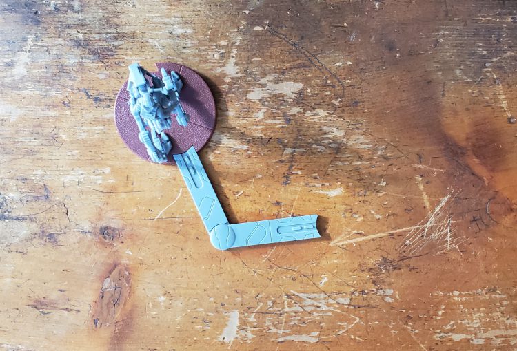 Movement markers for speeds 1, 2 and 3The movement markers help remove some ambiguity from simply measuring from base to base. On a basic infantry model, you can move as freely as you can in most war games, the movement markers are pretty flexible. Vehicles have notched bases however, which you can only move when the movement marker is placed inside this notch. Otherwise, movement is pretty simple: place the marker against the base, adjust it to your desired destination and place the model at the other end. They don't have to move the full amount if you don't want to.