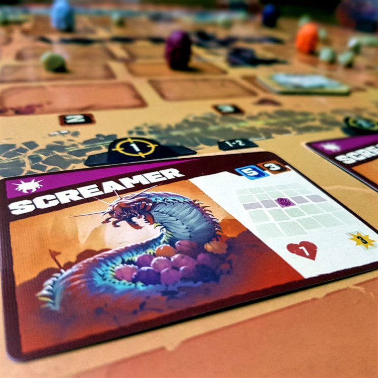 “My Mommy Always Said There Were No Monsters. No Real Ones. But There Are.” - Rebecca 'Newt' Jordan, AliensPlace the eggs and rubble based on the starter worms, then pick another worm from the pile and place it on the board. The number of additional worms selected varies based on the number of players in the game, and can add up to 3 additional worms on the board. Once this is done, draw 3 additional worm cards, and place them in the terror zone. Take the target token that is above each worm, and place it in the coordinates as a warning. You will not place rubble for these worms.