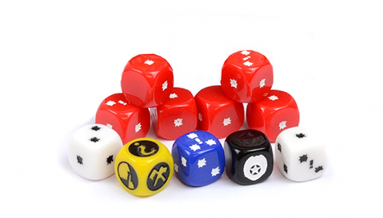 After Events, everyone does all melee at the same time. Each survivor checks their Melee Stat (Allen pictured earlier in the article has one White dice) and rolls those dice, adding any dice from weapons they have. Blue dice are the best, followed by white then red. Compare this attack roll versus a Walker's roll of one Red (or if they group up, they start getting more and more exponentially up to a max of five each). In order to take down a Walker, you need to roll a Headshot (!) and beat the roll of the walker. If you don't roll a Headshot but do manage to beat a Walker, they'll be knocked prone. If you fight them again when they're prone you can automatically kill them without a headshot as long as you beat their roll.