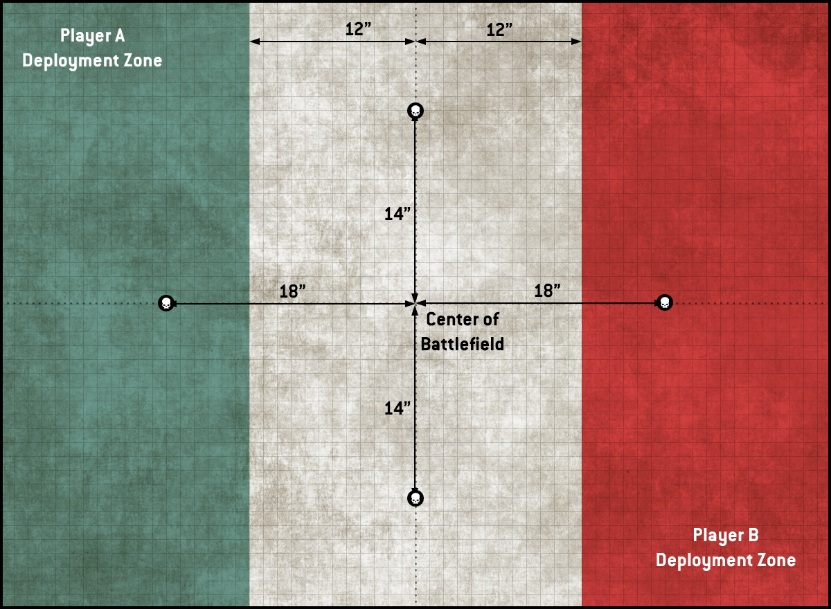 Battle Lines is a hard mission and not one of my favorites. It usually defaults to a grind game where the player going second has a significant primary advantage due to the ease of removing an opponent from an objective early. However, Cameron was able to tag an objective behind an obscuring wall with one of this three Talos squads on his Turn 1 and I was not positioned to challenge it with ObSec units. His other Grotesque and Talos units took up position to leverage a T2 advance + charge, distributed equally with one on each side and in the center sheltered by obscuring. His infantry fanned out to prevent my reserved units from coming out in his backfield.