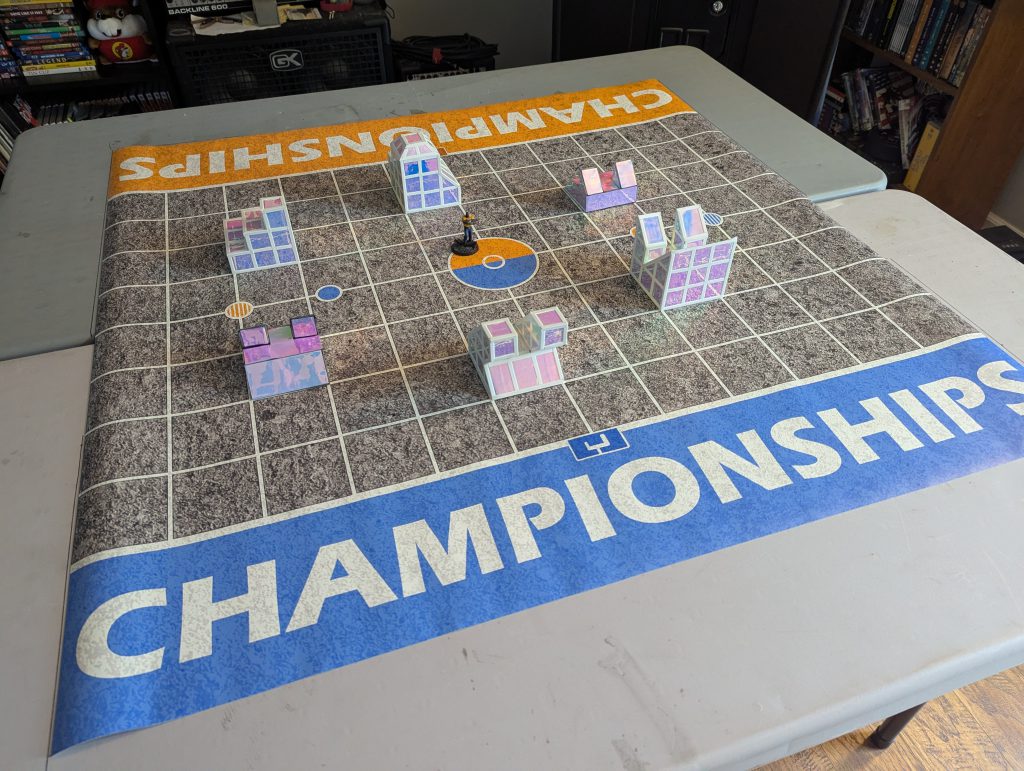 This year, I finally ditched the idea of having tiles and made a custom mat for it instead. The tiles were too labor intensive and it was proving difficult getting all of the lining and edges to match up. Luckily I was able to dust off my old graphic design training and designed a mat from scratch. I then shipped it off to Mats by Mars, who were great to deal with and the print job turned out really nice.