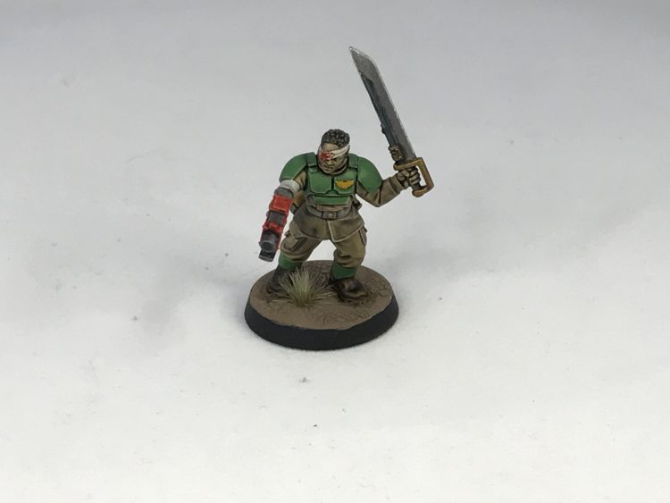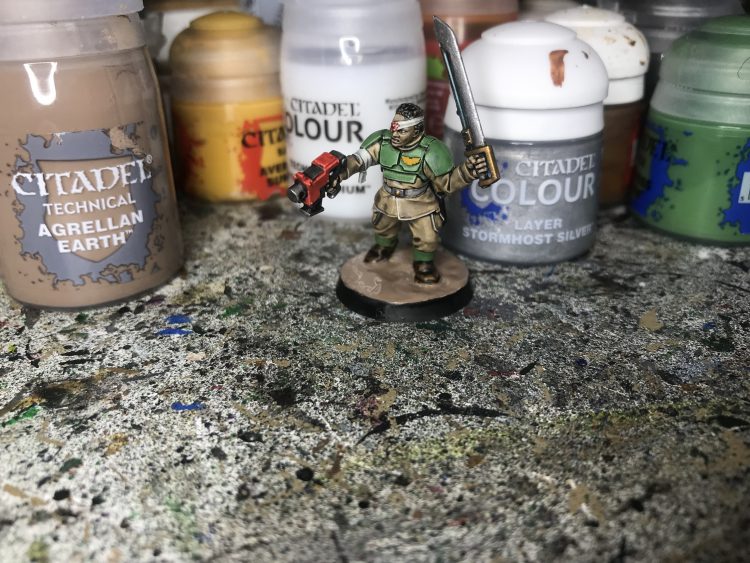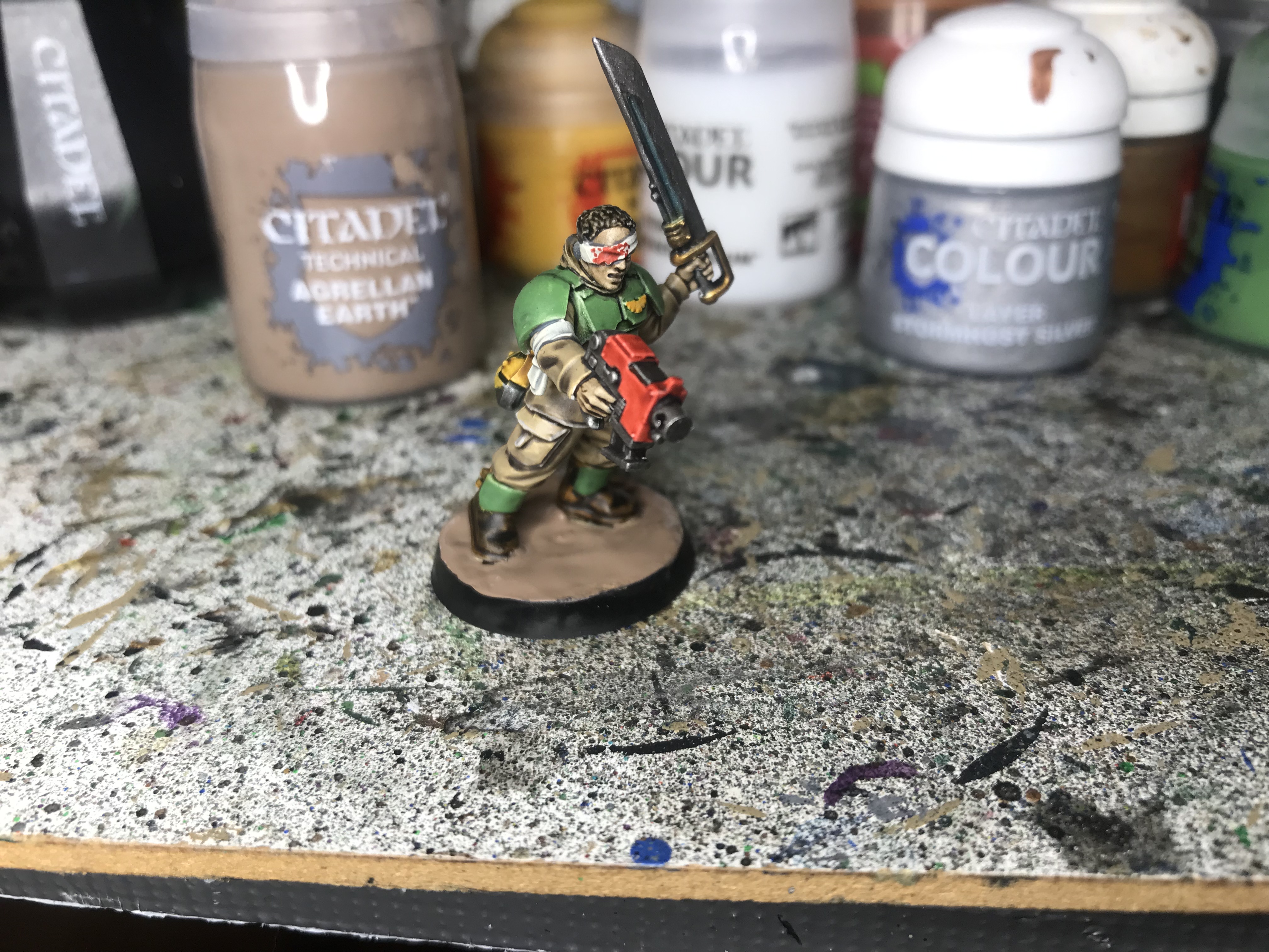 - Zandri dust followed by some sort of thinned Contrast wash for the khaki (I ended up going with thinned Basilicanum Grey).