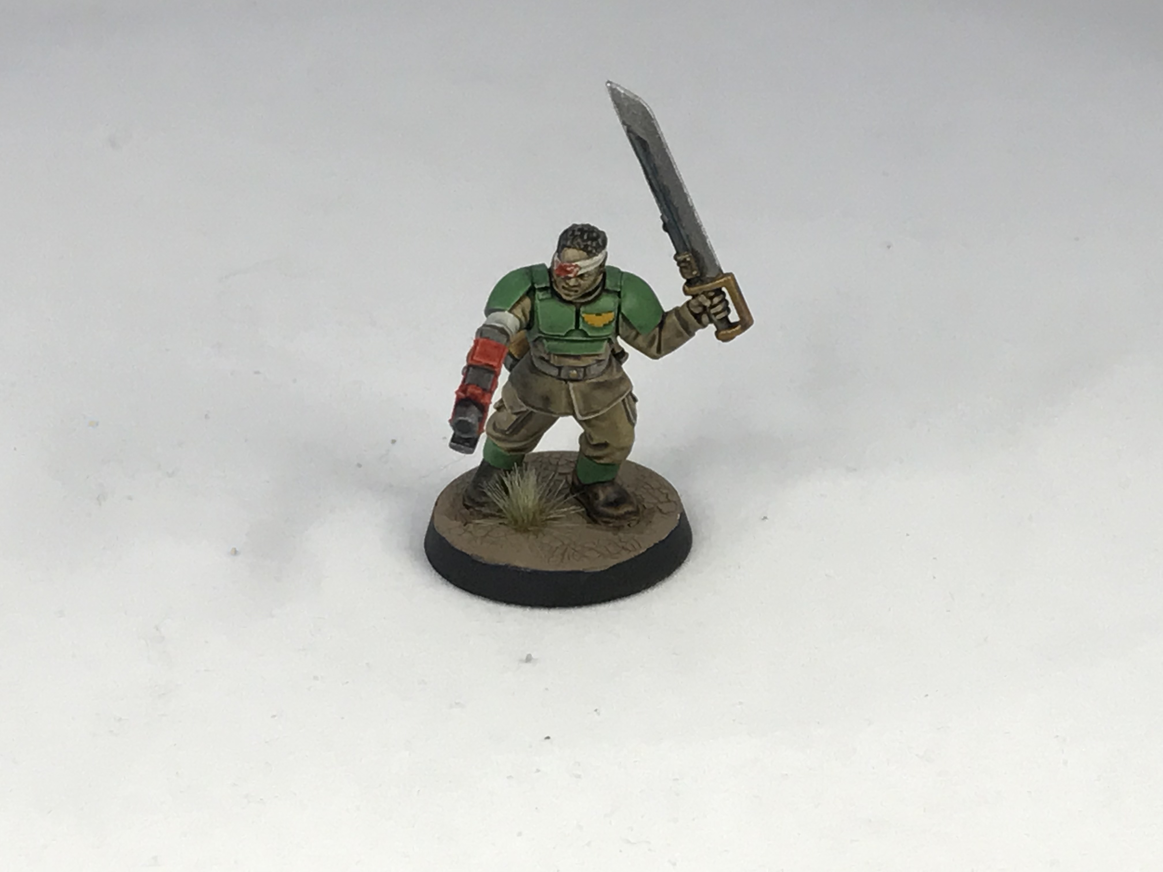 Cadian Shock Troop. Credit: WingsMy overall impression of this kit is very positive, and I think GW have hit on a smart move here. Faces and more dynamically posed weapons and arms are where the eye is drawn to on infantry models anyway, so a small upgrade sprue can go a long way. The only thing I don't like about this release is that the sprue isn't available separately, because I can see some Guard players wanting a lot of them to re-kit existing models. In general though, more of this sort of thing. Although not for the Eldar Guardian kit. Please put that out of it's misery.