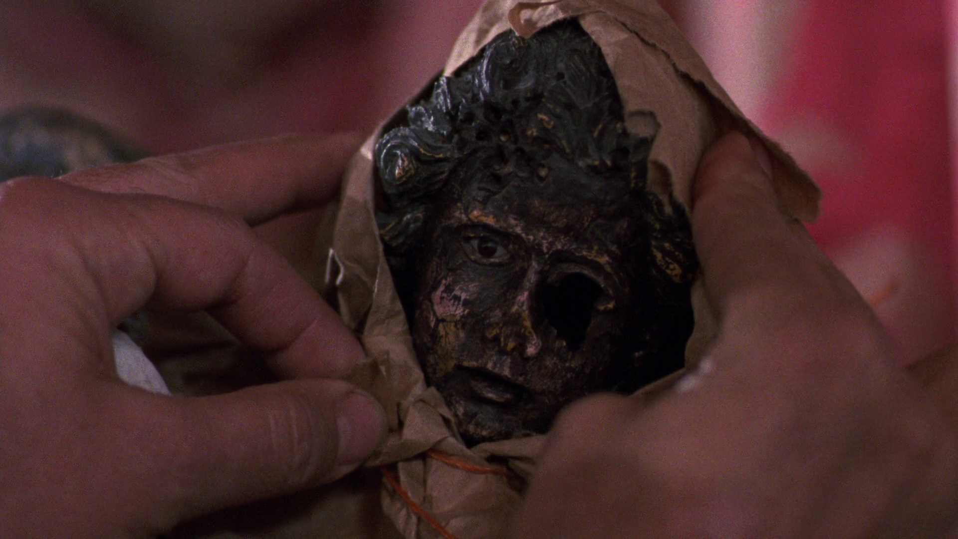 Ron Perlman is the actor that stands out most in this film; that’s not entirely positive, but it’s not negative at all, either. He feels slightly miscast and out of place, but in a good way. A good way for him, at least. In the script, the character Angel is a brutish, simple fail-nephew who resents his uncle but is compelled to obey him for his inheritance; he bumbles around the film applying violence to whatever problem he’s presented with, swinging wildly between obsequiousness towards Dieter and almost comic impotent rage when he knows Dieter isn’t listening; there’s a scene in the middle of the film where a pantsless Angel, sitting in his little office-nook near the elevator up to his uncle’s well-appointed penthouse, talks to him dutifully over the walky-talky that connects the two men and screams a steady stream of curses at him once his thumb is off the transmission button. Perlman, not quite at the height of his powers yet as an actor but certainly all the way there physically, powers through the Angel in the script and takes him over with an intensity and presence that makes you wish it was his movie -- Angel’s cowardice turns into low animal cunning, his cringing servility turns into a thin, false veneer of civility that barely masks his capacity for violence, any trace of panic turns instead into contempt for consequences, and when he finally sneers and steps down on Dieter’s throat to kill him in the movie’s final moments before taking a pipe off the wall and swaggering out on to the rooftop to murder an old man and a little girl, you’re mainly left thinking, “Why didn’t this absolute shark of a man simply kill these two old farts in the first ten minutes and save us from having a movie?” Del Toro would obviously agree on this count; Perlman would become his favorite actor, and is to this day probably the single on-screen talent most associated with del Toro’s work.