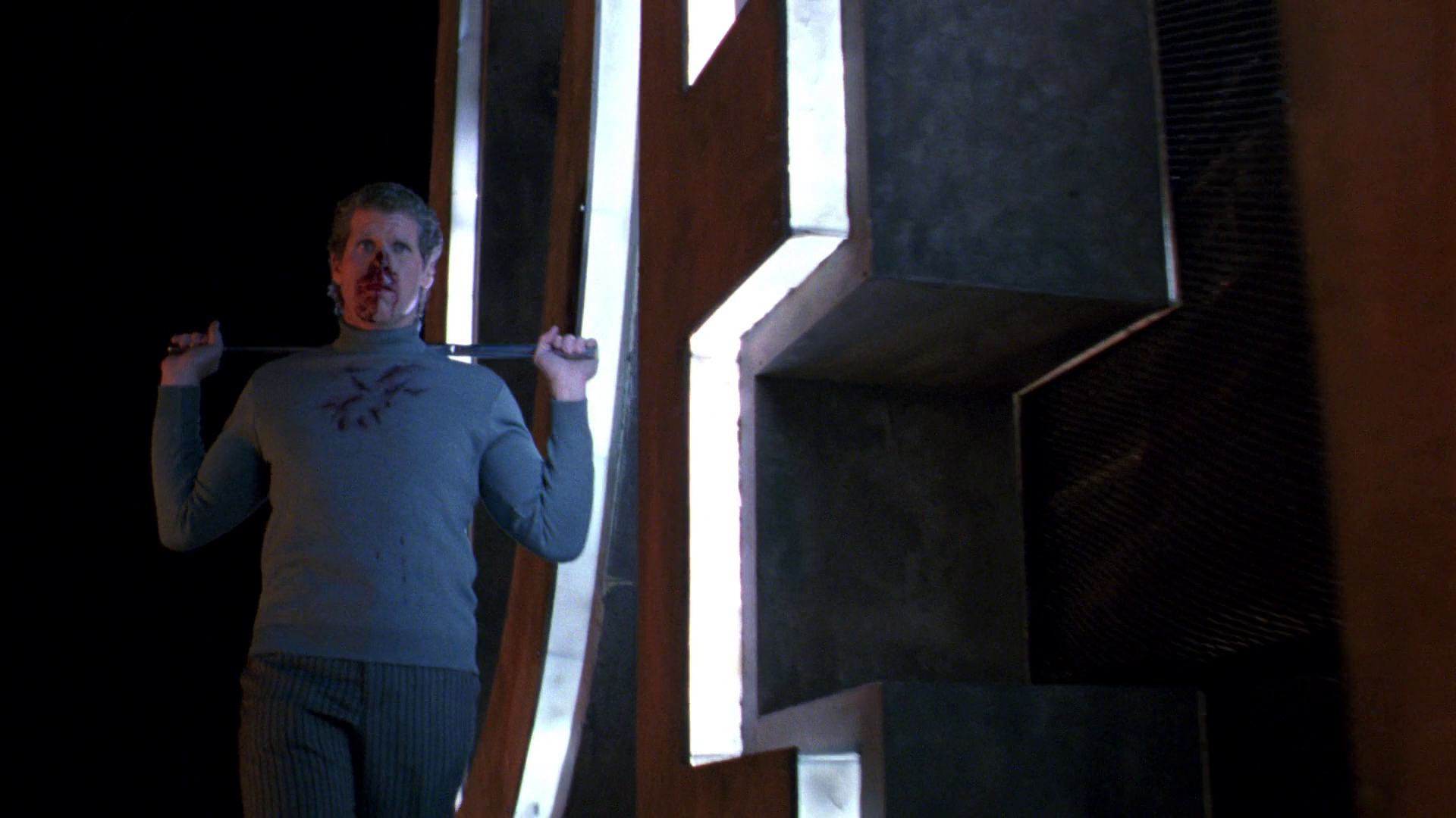 The effects of the bug’s gift are at first wholly beneficial; Gris regains some of his youth and all of his vigor, and then some. Then, of course, he begins thirsting for blood. Angel, who has been stalking him, delivers him to Dieter so the men can have a reckoning; it ends with Gris revealing he’s hidden the device and fleeing Dieter’s warehouse. Angel kidnaps Gris from a New Year’s party where Gris’s blood thirst over powers him and he tries to drink the remains of a man’s nosebleed in the bathroom; he accidentally beats Gris to death while trying to get the location of the bug from him, and then stages an automobile crash to hide his crime. Gris, dead, is taken to the mortician and the funeral home for a wake and cremation; he gets up and leaves before his corpse can be put through the oven in a great sequence of low-budget filmmaking where an open lid and a door left ajar clue the viewer in to what has happened while the inattentive mortician’s assistant is off in his own little world.