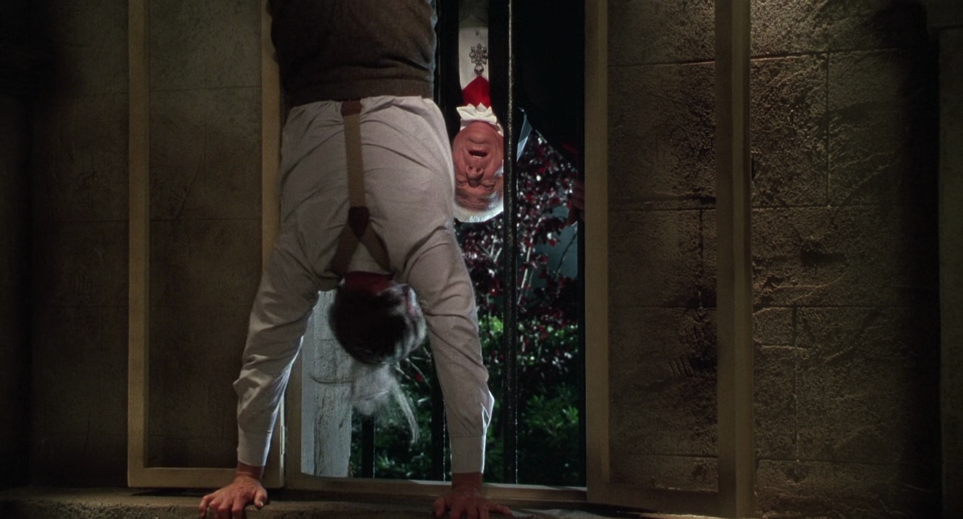 It is a fairly straightforward adaptation of the 1931 picture, truth be told: first act in Transylvania, where Dracula enslaves Renfield; second act in England, as Dracula moves in to Carfax Abbey, Van Helsing takes center stage, and Dracula kills Lucy; third act as Dracula moves on to Mina and our heroes band together to put him to final rest in an abandoned chapel instead of Carfax Abbey. As discussed in the column about that film, it’s a rather uncompelling plot structure, and frankly Dead and Loving It adheres to Dracula 1931 so closely that it is the obvious inspiration, no matter how many times they do wig gags about the Count’s silly hair in the Coppola adaptation (three, though the first two at the castle are so close together you might count them as the same one). In that sense we are blessed, because having that much Renfield is more tolerable with MacNicol -- 1931 is not one of the better Dracula films mentioned above. That said, it is not so much better that it’s worth writing home about, and there’s little call for a beat for beat remake of such material sixty years later, just with some middling humor thrown in for seasoning.