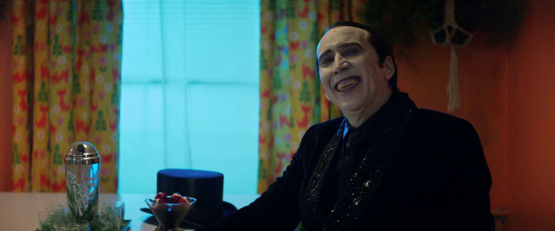 While way too much screentime is being devoted to the crime stuff, Renfield and Drac are growing further apart because Dracula is an insane genuinely evil mass murderer who dreams of being a genocidaire, and Renfield is a good egg who wants to wear colorful clothes and have a nice normal life, but has made some bad decisions and is in a relationship with an abuser. At first I thought the movie was taking the piss on the abuse metaphor, but no, it’s very serious about that. And to be clear, I prefer that to the alternative in a vacuum, but if you’re making a movie about Renfield and Dracula actually being an abusive, codependent relationship, you can’t also have it be the happy fun jokes movie, because then the scene halfway through where Dracula murders the entire support group on screen doesn’t land as well. Or at all. (And don’t worry, the movie doesn’t even have the confidence of its convictions here; every Good Guy who gets hurt or killed in the film’s runtime gets brought back to life in the end using Drac’s blood as a macguffin.)