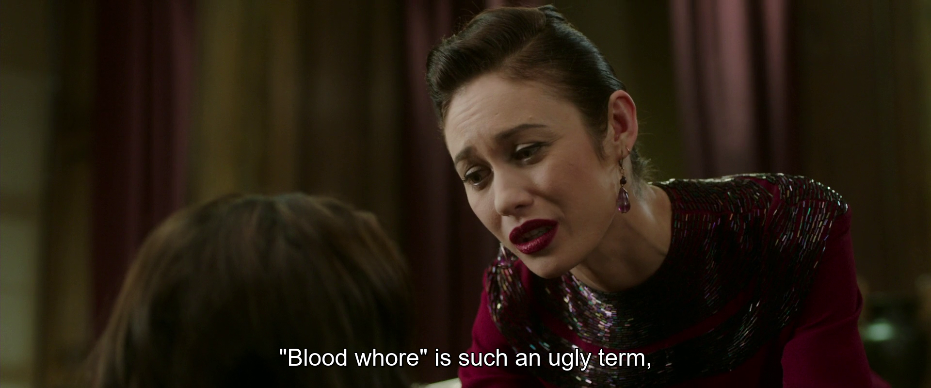 This is a transition shot in Vampire Academy; it’s just in there to establish business as usual is going on and all the vampires are getting their blood, which they do non-violently through volunteers who are like, their fans? From online? The film speeds past any of the implications of this. It’s part of a montage about school life in the eponymous institution, and it’s on screen for some two seconds and change before the film moves on. Every other thing about this movie is worse than that shot. No one involved in the making of this movie on a creative or conceptual level understood or, I suspect, understands to this day a single thing about vampires. This is the high point of this movie. It’s downhill from here. And it's not even a particularly good shot.