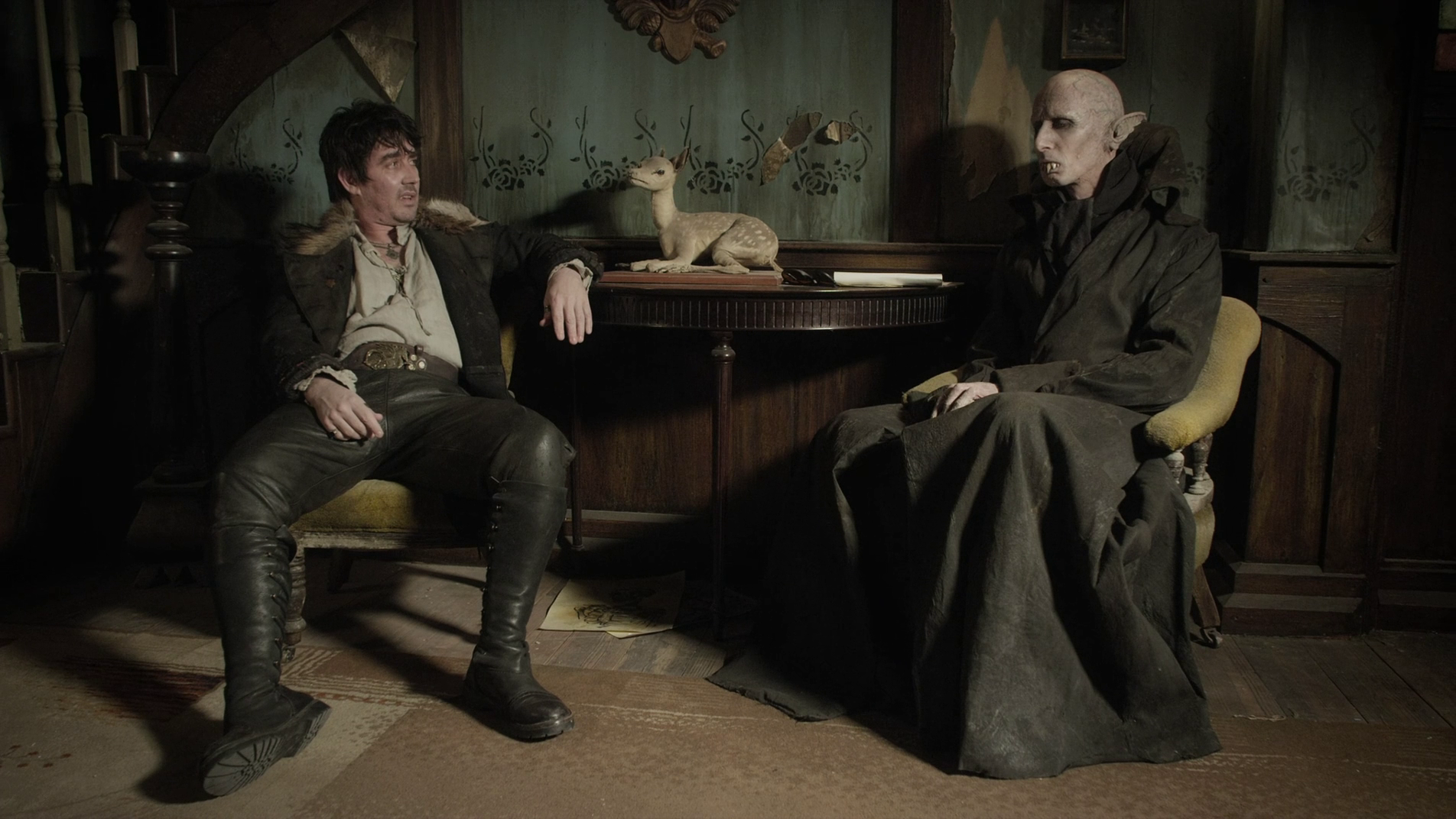 The conceits of both the film and the show are broadly the same -- four vampire roommates live in a house together with a variable number of human familiars, and we follow them about their un-lives. Each vampire is broadly some sort of fictional archetype of the sort; the film has a pair of Draculas, a Nosferatu, and a more modern “scoundrel” vampire in Deacon (Johnny Brugh). Taika Waititi’s Viago plays off the posh dandy versions of Dracula from American film adaptations of the tale, while Jemaine Clement’s Vladislav leans into the old ‘Vlad the Impaler, scourge of the Turks who impaled all his foes on stakes’ version of the guy. Petyr (Ben Frashem), the Nosferatu in the basement done up in Orlok prosthetics and makeup that still give him enough facial range to do some great expression work, is also the vampire that ends up tragically burned to death. The majority of the film’s plot hinges around Nick (Cori Gonzalez-Macuer), one of the intended victims of the dinner party mentioned above, escaping the house onto the lawn and getting jumped by Petyr, who instead of just killing him also turns him into a vampire.