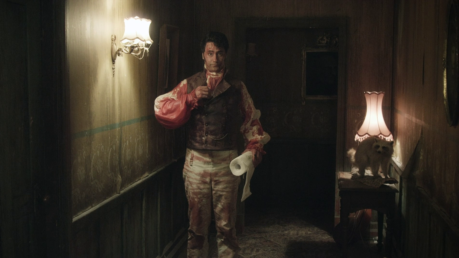 Nick is the weakest part of the feature, mostly by design; Gonzalez-Macuer is intentionally playing him as Just Some Regular Dude who happened to get the immortal curse of blood thrust upon him, and predictably thinks it’s really cool for about a week before discovering that if you’re not already a weirdo freak who likes the aesthetics and the murder, this whole deal actually kind of sucks. The turning point for him is when he discovers he can no longer eat chips, his favorite food (here we get a cut from the takeaway where he thoughtlessly eats one to him projectile vomiting blood out in the alley, and it is again just a fantastic amount of blood, a full-on firehose of the stuff that he couldn’t possibly have room for in his stomach or even all the veins in his body). There’s a fun bit of plot building through the movie both with the vampires’ rivalry with the local werewolves, who are led by Flight of the Conchords veteran Rhys Darby, and with a local social function for all of Wellington’s undead that leads to a dramatic fight between Vlad and his ex’s new vampire boyfriend on the dance floor, but the real point is to just have all these guys hanging out together and doing bits, and while Nick and his human buddy Stu (who everyone likes better than Nick and refuses to eat) are very important to the plot, they’re mostly just posts to hang jokes off of.