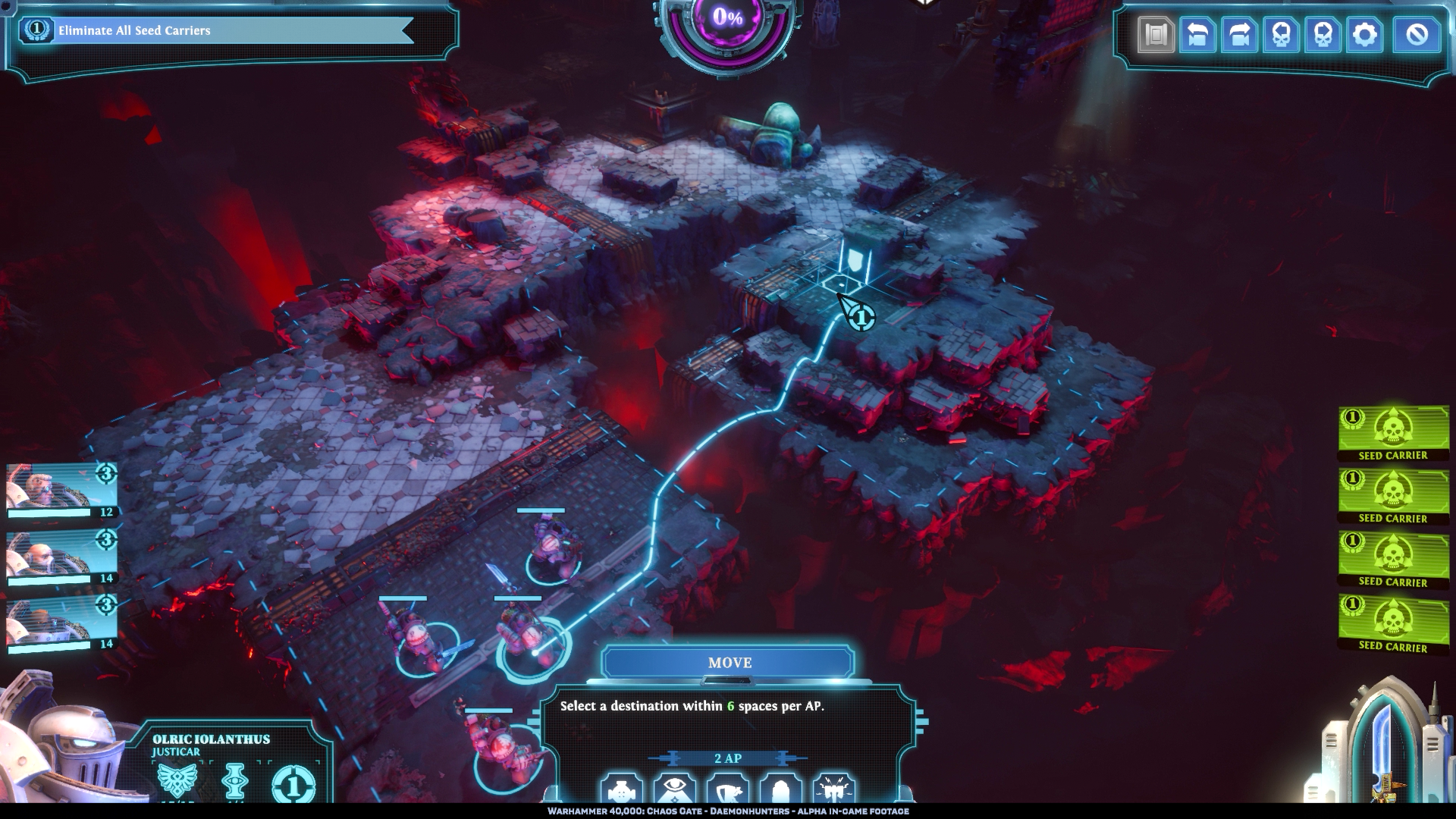 Chaos Gate: Daemonhunters. Credit: Complex GamesOn first glance, one might be excused for thinking this is an extremely impressive XCOM mod. Squad members navigate across grid-based maps replete with perfect information on how far they can move, plus shield icons for half and full cover. However, unlike XCOM, it does not appear the Grey Knights are liable to miss a 95% shotgun shot at point blank range. Your dudes flat out do not miss - these aren't some green recruits with NERF guns, they're the best posthumantiy has to offer. Instead, they'll do more or less damage dependent on the level of cover their enemies are in, so flanking is still very much an important element here. Perfect information really seems to be a driving force in Daemonhunters, as icons will show how much damage a Grey Knight can expect to do when moving into a given square vs. a given target, even before they get there.