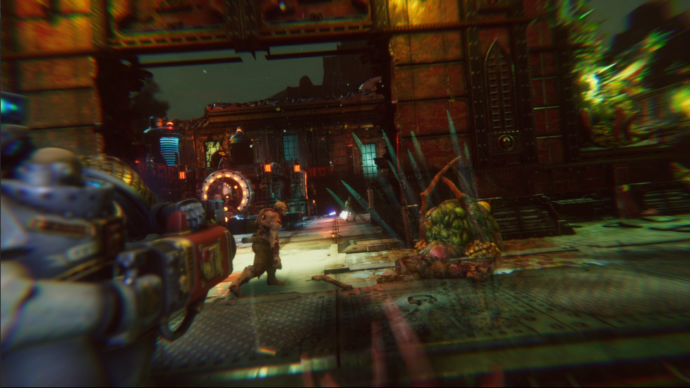 Music all sounds like it could have come from Dawn of War II. I don't mean that as an insult - I like the music in Dawn of War II! It's just that nothing I heard in this preview stood out to me, but it "sounds" like Warhammer, if nothing else. The voicework also hits the mark pretty well, with the vox-distorted bassy voices of the Grey Knights lending each combat bark a memorable quality that would again be right at home in Relic's RTS classics. It's nicely reactive, with my knights shrugging off attacks with "Barely a scratch!" or "Weak!". Voiceover from mission givers was kind of low in the mix, but the performances were solid, about what you'd expect from a stern shipmistress and an even sterner Grey Knight. The Chaos cultist voices are all pretty over the top, and take cues from Borderlands-style wackadoos. Daemons sound suitably gross and evil as you'd expect, with some good audio processing to make them sound grosser and weirder. Some weapon sounds were incomplete, but what was there sounded great. Autoguns have a crackling rattle that rises above the music and voice work, boltguns are bassy and powerful sounding, and the meaty squelches of Chaos dudes getting vivisected really sell the action.