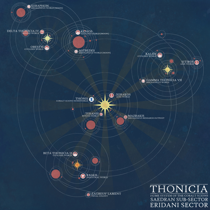 Diagram of the Thonis system. Credit: Charlie BrassleyAroundabout this point I also put out some 40K short stories, because writing is fun. And remorselessly hard. But fun. This probably wouldn't count as hobby progress for some, but writing has always been a part of my hobby experience. If you want to read three linked short stories about what it’s like in an Imperial Navy Battleship strategium, what it’s like when Inquisition Storm Troopers have to fight Word Bearers in a boarding action, or finally what happens when an Inquisitor attempts to interrogate a Heretic Astartes, then click on those links.