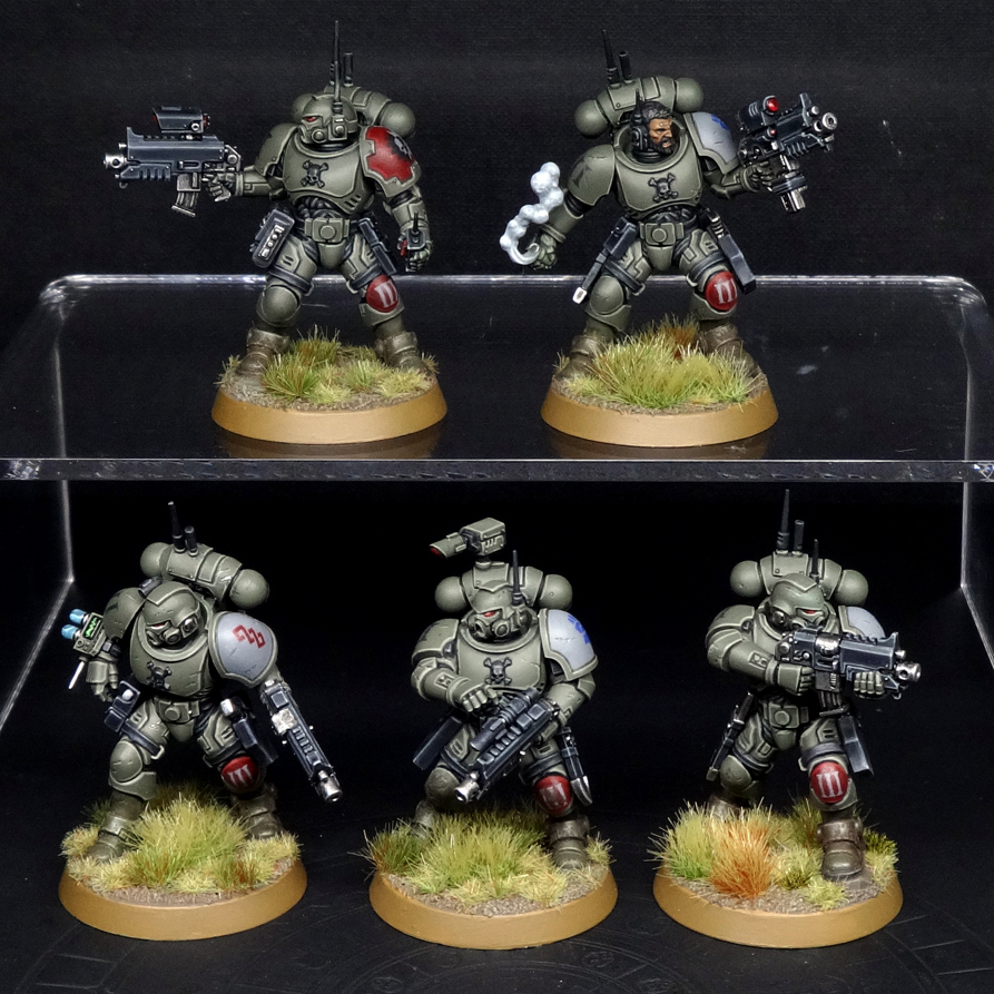 Incursors, or possibly Infiltrators. Credit: Charlie BrassleyFull article: Adding Variety to Phobos Incursors. Includes advice on darker skintones and freehanding a Cog Mechanicus.