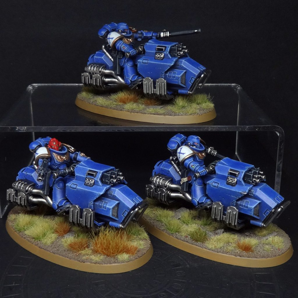 Cobalt Scions Space Marines Outriders. Credit: Charlie BrassleyFull article on Primaris Outriders grav bike conversions.