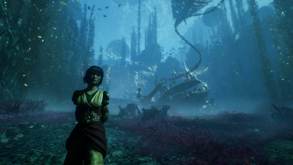 Combat is also complicated by the ability to spend 1AP to take an aimed “free shot” at your enemy, lots of enemies have a special “weak point” you can shoot at, either to deal very significant damage or to weaken their attack/defence. Sometimes, especially towards the beginning, these weak points are either obvious (literal glowing orbs) or very thematic (an enemy in the aquatic section has a floating naval mine on a chain on its head, no prizes for guessing what happens if you shoot at it), in later enemies they’re a little more oblique and so combat does reward experimentation and risk-taking, those free shots aren’t free!