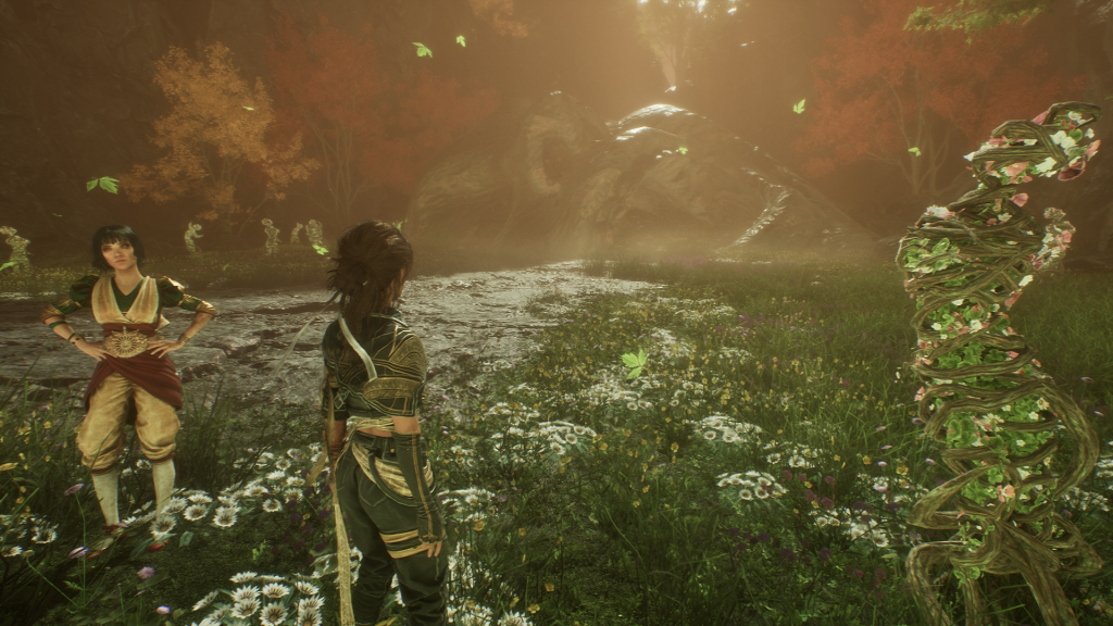 James: The exceptional VA cast is supported by some incredible work from the motion capture artists, who help make these characters feel truly real. They help the interpersonal scenes feel very naturalistic despite being set against a vibrant Ghibli-like wonderland, and more so than I think any other game I’ve played, you can actively learn things about the characters just by watching the body language. Having rolled credits on the game, where each character gets a Marvel-style flashcard, I was very pleased to see that these performers got individually credited alongside the vocal talent, as their work is critical to how compelling the characters are. Also crucial to that is the script, of course.