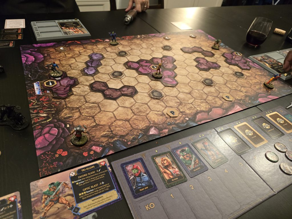 Hell yes it’s fun! As a fan of the franchise I am wildly biased and I would never not enjoy playing with He-Man toys. But to give you a feel for the kind of decision points it creates, imagine you’re playing 1 vs 3. The Controller is flying solo and they’ll do whatever they’ll do, but the Players will have 4 activations between the 3 of them, which they need to dictate at the start of the round – meaning someone gets to go twice.Which player’s character gets to go twice? Chances are you’ll have a couple of people making their pitch for why it should be their guy. But then you’re talking about your plans for the Round right in front of your opponent, so you’ll try to do it with a nod and a wink as much as you can – and then you’ve also got to reach consensus on who goes in which order. This game generates a lot of these social interactions, where supposed team mates have to tread the line between banter and blood vendettas.
