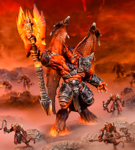As you can imagine Oskan wasn’t happy with being imprisoned at the bottom of the Abyss. If you aren’t sure what the Abyss is just imagine the Grand Canyon but grander with more ash and fewer tourists. What makes the Abyss truly unbearable is the creative drought it represents, being a Dante's Inferno from Wish someone thought up after watching a Hellraiser marathon. There’s a whole circle of this place dedicated to sexy Succubi who torture people for their own perverse pleasure. Apparently we’re in the 90’s still, where games like Dungeon Keeper were seen as cool and subversive. This place is so twisted you have to be told how it drives people to insanity in every paragraph, just in case you forget.I digress. Within the Abyss there is a fiend who has really made a name for himself as the Lord of Lies. I say a name for himself, so badass is the Lord of Lies that he is favoured of Oskan, the Father of Lies and serves as Oskan’s Avatar. With such patronage comes phenomenal power but all consuming obligation. Over countless centuries the Lord of Lies and his forces have searched Pannithor for each tiny speck of dust once part of Oskan’s black axe. Eventually having enough to see it reforged by the Evil One Garkan (that guy who made the Riftforged Orcs.) This was the almighty power up needed for the Lord of Lies to go find the final part of the axe, all the while hearing Oskan whisper encouragement and words of power.