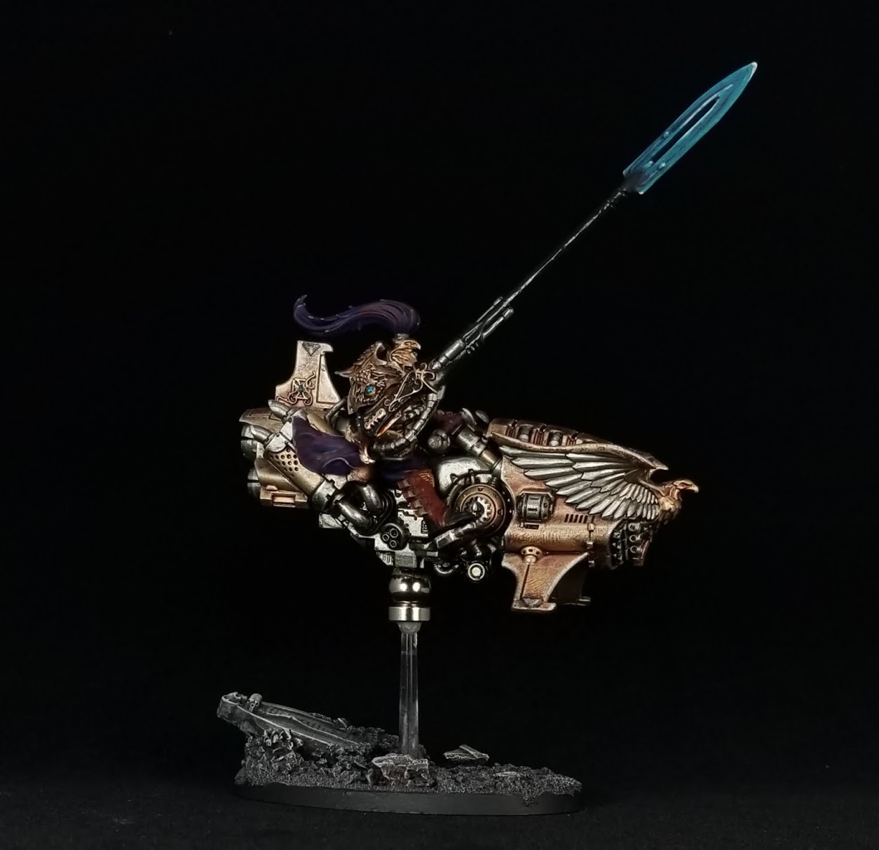 Shadowkeeper Allarus Custodes. Credit: PendulinOne relic rules them all here - the Praetorian Plate. It brings us no pleasure to announce that everyone who got mad at us every time we didn't proclaim weird combos with the old version to be the best thing in Custodes now looks retroactively justified, because this thing is monstrous. It's an upgrade to an Allarus captain that boosts their Toughness by 1, and allows them to do a teleporting Heroic-like effect once per game, as long as they're not currently engaged. In the Heroic Interventions step of your opponent's turn, you can just pick them up and place them anywhere that's within 3” of a friendly non-VEHICLE unit, and that is also within Engagement Range of an enemy unit. There's no requirement that the friendly unit be engaged, so as long as this model is alive and you haven't blown the ability yet, there's essentially a ~5” danger zone around all your units that this guy can attack stuff in (remembering that his base is 40mm, and he only has to be within 3” of the friend, not wholly within). Thanks to being ADEPTUS CUSTODES INFANTRY he's ObSec, and you can also put Unstoppable Destroyer from the Captain-Commander section on him to make this even more powerful, as we'll cover shortly. This is so good that we expect it to turn up in most lists that are running any serious numbers of Infantry and Bikers; it's really only all-Dread lists that can't use it.