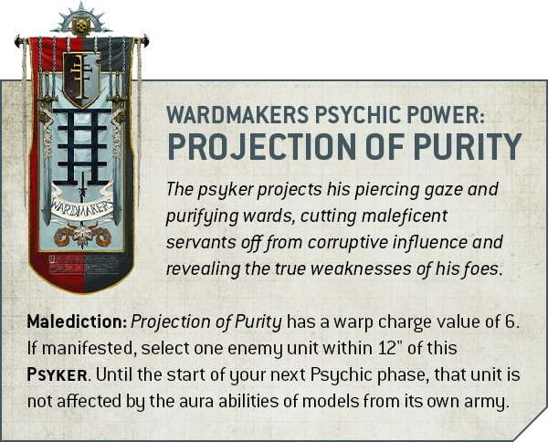 - Tide of Banishment: Your optional button to slam when Daemons need to be purged, giving your units an aura that saps their leadership and RR1s to hit and wound against them.#