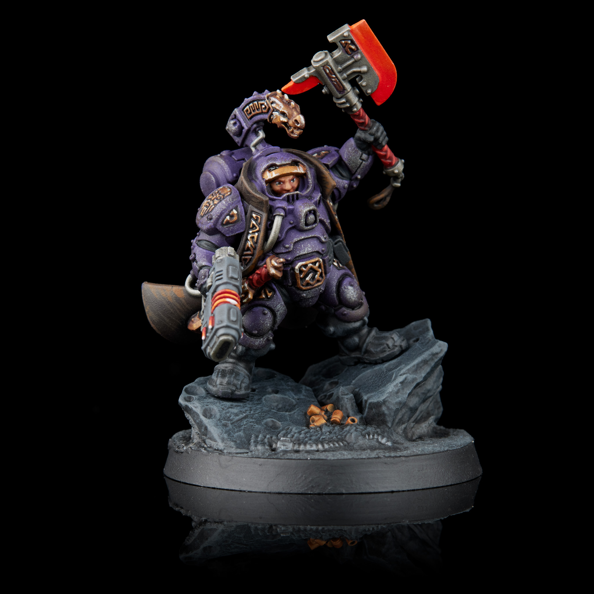 Einhyr Champion. Credit: RockfishAn Einhyr Champion rocking a Mass Hammer can take the MEGA BONK relic Exactor, it doesn't have a hit penalty and unmod 6s to hit deal 3+D3 mortals instead of normal damage. Got some hit rerolls? Fish for 6s to hit and smash a unit with mortals. For a more subtle melee threat, The First Knife is a relic for a Kahl or Grimnyr, granting one additional attack where, if it hits the target, they just take d3 mortals plus one per Judgement Token they have. Shiv em for mortal wounds! More melee weapons roll in with the Flayre, a relic axe that replaces a forgewrought axe which bumps to +2S AP-3 2D which also throws an additional 3 attacks. Teeth of Terra on steroids, but probably doesn’t quite justify a CP in Nephilim, as it isn’t as transformative as the threat of bonking/shivving the enemy for a massive pile of mortals. Last up for BONK power is The Hearthfist, which replaces a mass gauntlet or concussion gauntlet. It sports +4S -3AP 3D, does not take a hit penalty, and bumps up to D4 when attacking a unit with Judgement Tokens. You can probably do better elsewhere on a Character, but this is one of the ones that can be handed to a sergeant if you want some extra spice in a Hearthkyn or Einhyr unit.