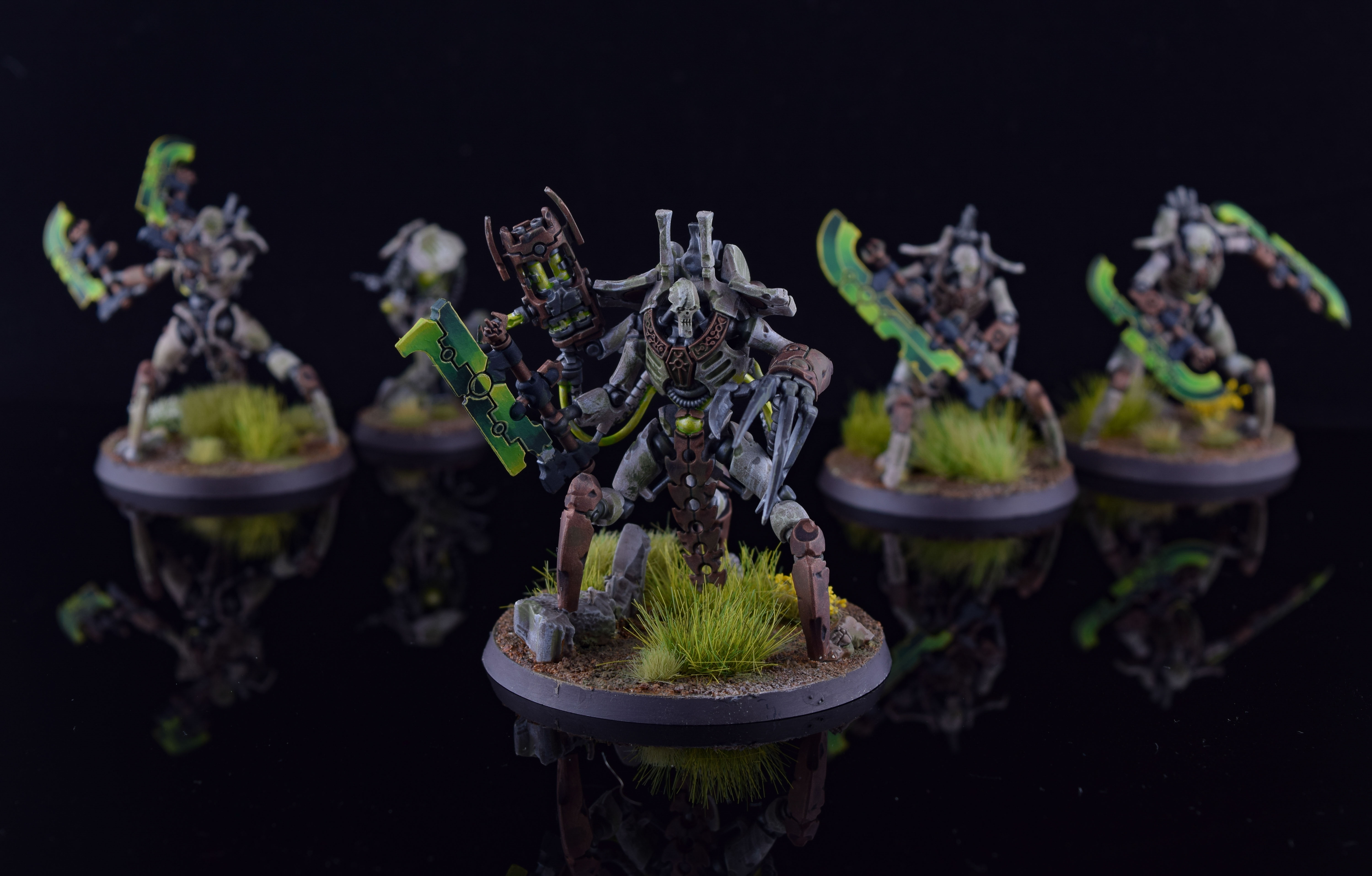 Skorpekh Destroyers. Credit: WingsSpeaking of melee units - Skorpekh Destroyers. chefkiss sounds ensue. These have the same statline as in Indomitus (i.e. brutal killers), but can now be taken in units of up to six and got cheaper, going down to 35ppm each. Add in the ability to use Whirling Onslaught to protect them and you have a premium unit that's going to be filling the Bladeguard role in the Necron army extremely well. The only downside is that the Canoptek Plasmacyte is now a separate unit, and to be fair that's only a downside because it would have done weird cheesy nonsense to the Reanimation Protocols math otherwise. For what it's worth, the Plasmacyte has a bunch of rules that tightly couple it to whatever Destroyer unit you've purchased it for, and the designers have smartly prevented it from being able to perform actions. It still has the same power infusion effect, which is a bit more interesting with high-model count units, but the Skorpekh basically don't really need it to be fine.