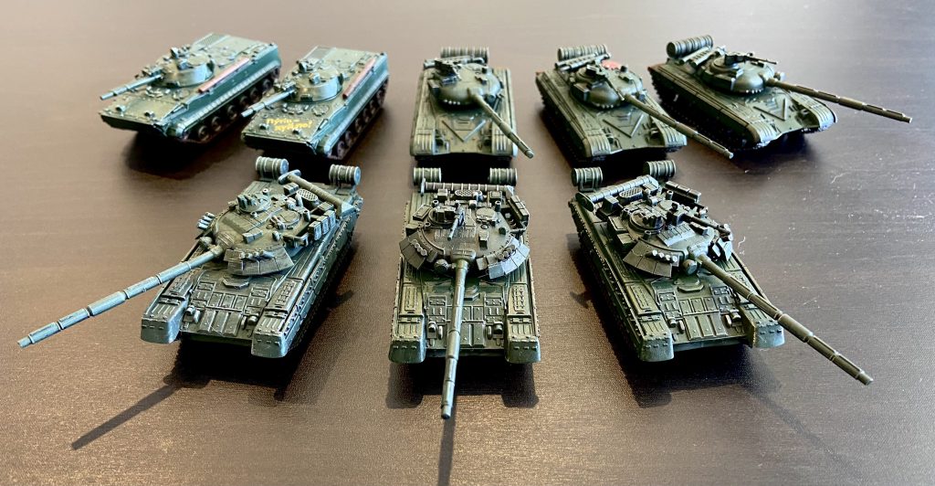 - Five T-55AMs or T-55AM2s, just like the T-72B Battalion box. These tanks are obsolete, cheap as hell, and will still kill an 18-point Le Clerc tank with a shot to the rear. They’re barely worth shooting at, until they remove a fifth of your enemy’s army because they hadn’t taken them seriously.