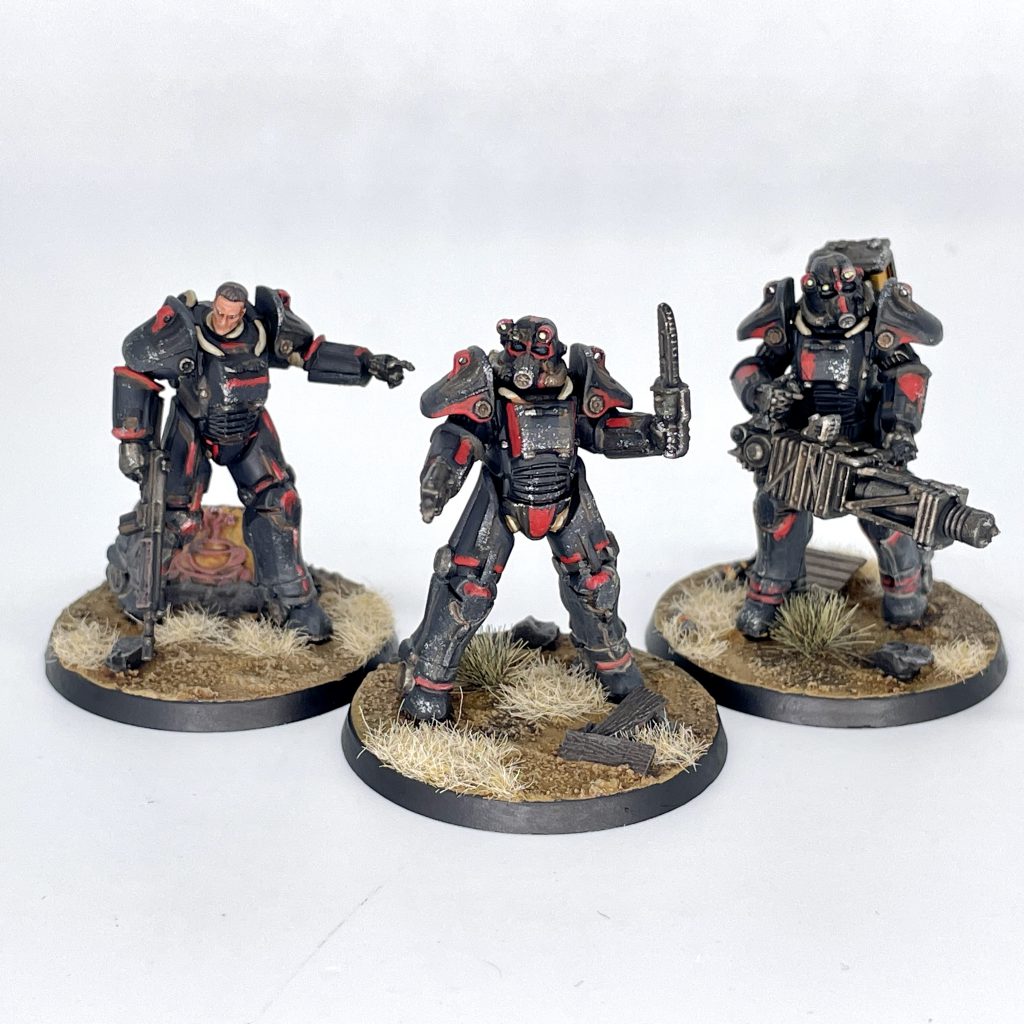 Low-Priority Purchase. The Unaligned: T-45 Power Armor box comes with three resin power armored models with a range of weapons, which you can absolutely use for Brotherhood even though they're labelled unaligned. This box is a little like the plastic kit in terms of suitability for Factions - one really useful option, and a couple of things that need proxying to make use of. Specifically you'll end up with:- Paladin with Minigun (Leader Champion)