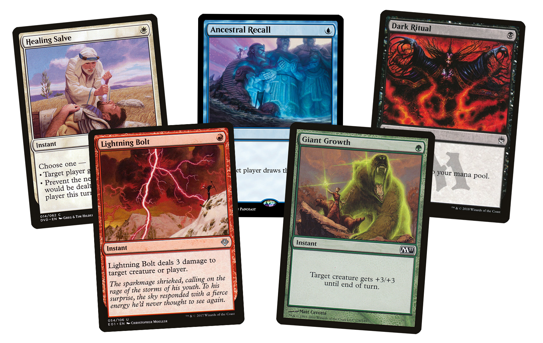 The original "boons" cycle from Alpha. Credit: Wizards of the CoastTaking advantage of these effects requires building a deck specifically around the idea of preparing to "reset' the board. You see this often in Control decks, where the goal is to win via attrition and card efficiency, classically "trading up" and resetting the board to regain control of the game state when things get dicey. More aggressive archetypes eschew card advantage and may make bad trades in favor of damaging the opponent so fast that they can win before the opponent can stabilize and the effects of card disadvantage are actually felt.