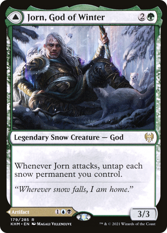 This deck takes advantage of Jorn's untapping ability to get around the detrimental effects of Winter Orb, Trinisphere, and Static Orb. The basic game plan is to ramp out and try to get Jorn on turn 2 so he can attack on turn 3 for an untap, and leverage your untap ability to not care too much about the lack of untapping going on. All by himself, Jorn is a powerful engine for getting around Stax effects that lock the board up by removing the ability to untap permanents.[embed]https://www.tabletopbattles.com/commander-focus-jorn-god-of-winter/[/embed]