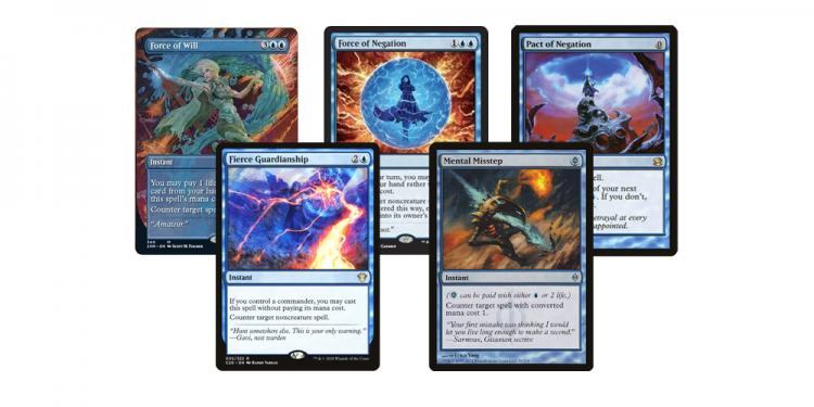 Credit: Wizards of the CoastFor protection we have 5 colors to choose from so can go with the best of the best, the zero-cost counterspell suite that is nearly an auto-include at this point: Force of Will, Force of Negation, Pact of Negation, Fierce Guardianship, Mental Misstep. We’ll definitely want Counterspell and Mana Drain, as well as Swan Song and Flusterstorm. Narset’s Reversal is a counterspell that doesn’t actually counter, and also can allow you to “steal” a spell on occasion, and Dovin’s Veto is an uncounterable counterspell. Red Elemental Blast we’ll throw main deck, depending on your meta, you may also want Pyroblast, and Dispel.