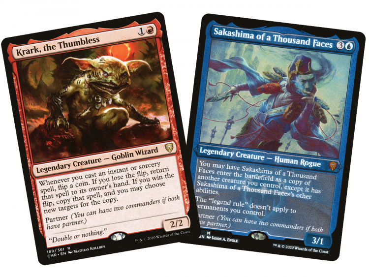 The fortuitous release of both Krark, the thumbless and Sakashima of a Thousand Faces in Commander Legends immediately put ideas for a deck in my head. If you use Sakashima to copy Krark, then whenever you cast a spell, you'll get two triggers, not one. Which means you may well get to copy your spell, and also return it to your hand., letting you have your cake and eat it too. Delicious.
