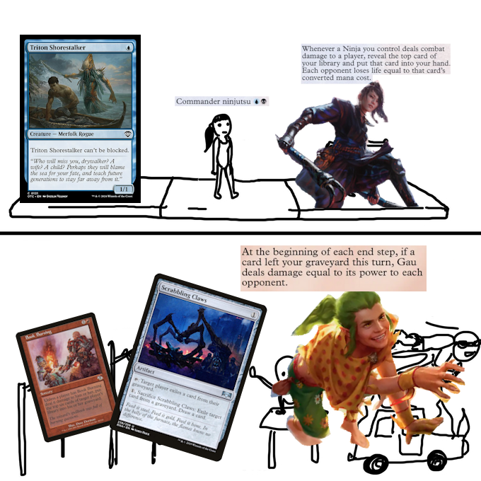The card too popular to errata.Let's not be naïve though, because Yuriko's a bit of an unfair comparison, being one of the independently-strongest Commanders of all time and all. I get that she's no Blue Farm, but in circles a hair below cEDH, there's few strategies more consistently lethal than pivoting between unblockable 1-drops and untaxable tempo. While Gau starts at 2 mana, Gau is only 2 mana once, and while the damage does scale, it's less volatile than Yuriko; that damage arrives in instances of 2-5 rather than 0-7. I say this not to compare Gau to Yuriko, but instead to put emphasis on the fact that their play patterns tend to garner removal spells, and that hits the former rather hard. Gau, if removed, resets his damage clock to 2 (his base Power), on top of now doubling in cost, so the moment he's annoying enough to at least one player that death warrant is signed. Therefore, we're encouraged to run enough protection, redirection, and acceleration to ensure our entire gameplan doesn't stop the moment Gau dies. This was quite a bit harder a week ago, but thanks to the new support in Secrets of Strixhaven, more tools now exist for our secondary gameplan of self-grave-hate. We'll talk about how much Lorehold's new pieces serve Gau's interest, but it's worth keeping in mind that, while similar on the surface to Tersa, Gau's not remotely the same in terms of play pattern; this kid is an engine, not an aggro payoff.