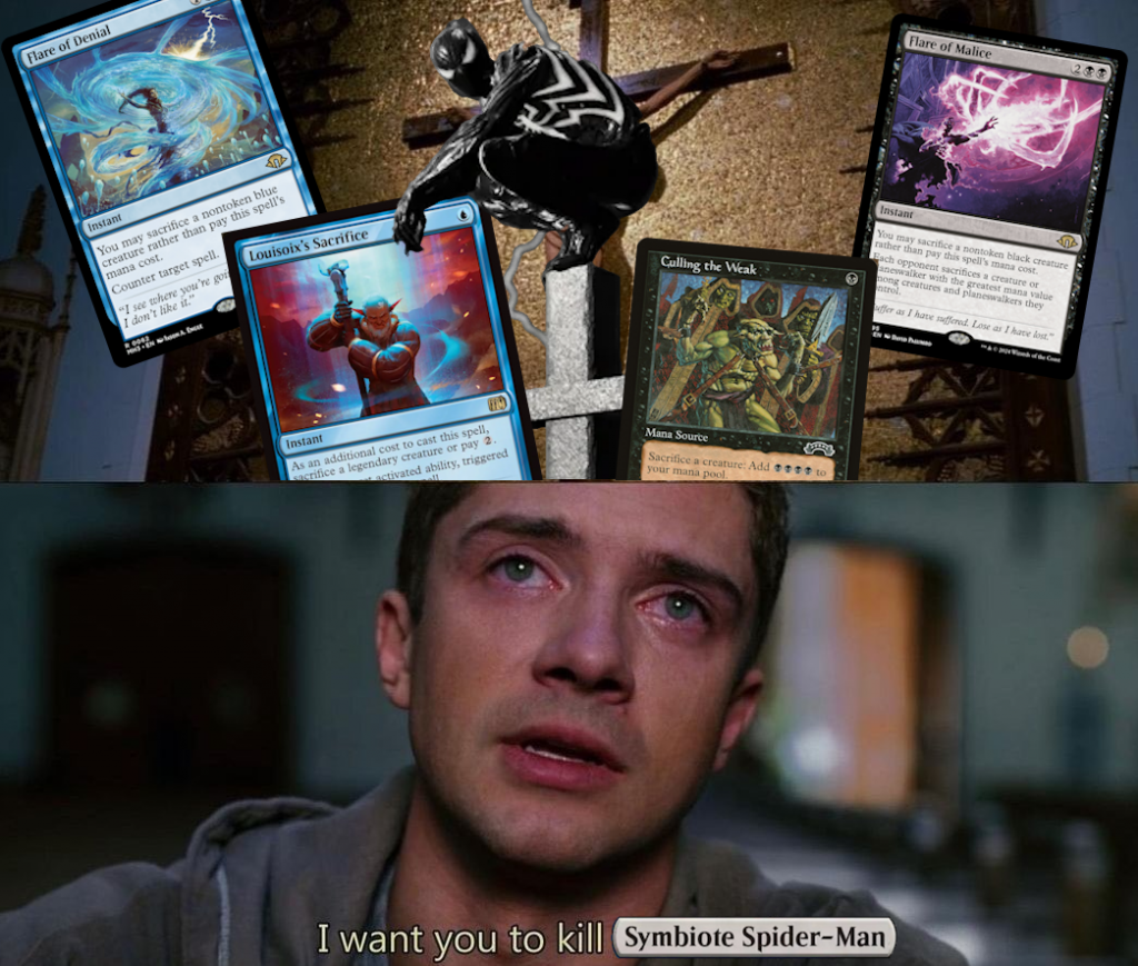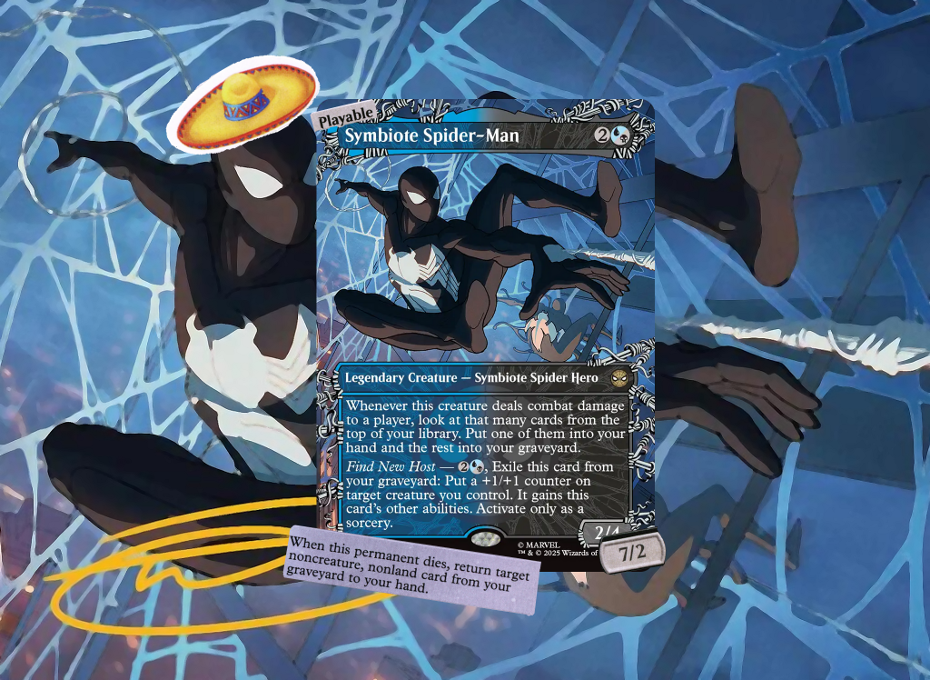 This list isn't just fun, it's fun in a nuanced way that niggles at the mind, that writhes in giddy jitters of feeling clever. It's undiluted Johnny opium. Counting myself among that psychographic profile, naturally I've been itching to refine Symbiote Spider-Man in my free time, to get that rush of dopamine that comes with Magic's great 'Aha!'s. I say this with all candor, you should play this list, and I fully expect to see the EDHREC page for Symbiote Spider-Man become overrun slowly but surely with Sticker-matters pieces, because it's truly the first compelling way to play this Commander. To circle back to the initial metaphor though, that arrives with a need for temperance, because people are honestly right to get salty upon hearing this is what you've brought to the pod. Peeling away all the cool things it does, it's still Stickers, and still Spider-Man, and respecting folks' weariness surrounding either subject (much less both) is a good lesson in conflict de-escalation. Still, if they do show interest, you're all in for a riotous time. Happy Stickering, dear reader.