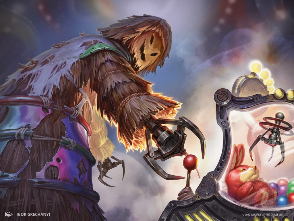 Before that, let's talk about getting the first Sticker on, though, and that means we need Tickets. That resource serves as the bottleneck for this strategy, as there's a mere eight Ticket generators in Dimir, and we're on seven of them. That's not a ton to base an entire archetype off of, but the good news is that we're also in among the strongest colors for tutoring them out. First and foremost, the one-offs: Glitterflitter, Scampire, & Command Performance. While these are strong due to how free their effects are, unless repeated it's essentially impossible to get the stickers you'd want on on Symbiote Spider-Man without blinking or repeating their effects. The only legal Ticket producer we're not playing also falls here, being the 6 mana Carnival Carnivore. We're down horrendous for Tickets, but 6 mana? Yeesh. Better for us are the repeatable suite, being Bioluminary, Prize Wall, Ticket Turboturbines, and the holy grail, Wicker Picker. Bioluminary is a house, given we're already on a number of effects to make our Commander largely unblockable, but nothing compares to the Scarecrow: Wicker Picker is ludicrously repeatable, and at over 30 Creatures in our 99 we can almost always chuck enough bodies out there to accrue the necessary Tickets. Notably, unlike most of these effects, you have to place the Sticker when you do so onto the last card played with Sticker Kicker, so it's often best to reserve the Commander until then. I felt it important to cover all of these though, because they're cards you—for good reason—likely haven't heard of. Some get Tickets without placing Stickers, others have weird targeting restrictions (though Scampire is arguably better for us than most lists he's ever appeared in); the whole mechanic's a mess, and its persisting legality is somehow its most confusing feature.