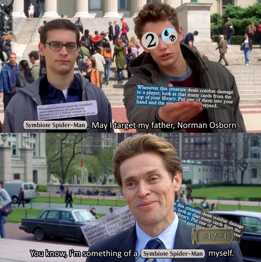 I read all your research on Stickers, really brilliant.Stickers fundamentally solve two of the main issues that face Symbiote Spider-Man, core reasons why he's been written-off by most Commander players. First, and most obvious, they provide additional upside that are transferred when using his activated ability. It's not the easiest thing to place a Sticker onto a permanent—but we'll get into that—so spreading their effects without the use of Tickets is greatly appreciated. Of course, this neither duplicates the Sticker itself, nor adds/removes it from Symbiote Spider-Man; it simply takes the text, and tacks it (and the original combat damage trigger) onto the ability's target. These additional abilities can be quite something, from Protection & Hexproof, to allowing for access to cards in the yard, and even turning the affected permanent into a 13/13 Eldrazi! On the whole, both the low and high-Ticket ability Stickers are worthwhile to tack onto other cards, and handily justify our choice of Commander. That said, Stickers aren’t exactly like Perpetual—much like Skullbriar they cease to be the moment a Stickered card enters a hidden information zone, per Comprehensive Rule 123.5. That means returning Symbiote Spider-Man from your Command Zone to the hand isn’t as effective as you might hope, as much as I’d love to extol the power of Netherbone Altar in decks that aim to cycle through their Commander. In that sense, it makes overtures to Henzie, as while the cost of our Symbiote will inevitably grow, the payoff (and ideally, Sticker count) will likewise grow each time as well. To make the most of each instance, it’s therefore wise to try and copy the activated ability by any means necessary.